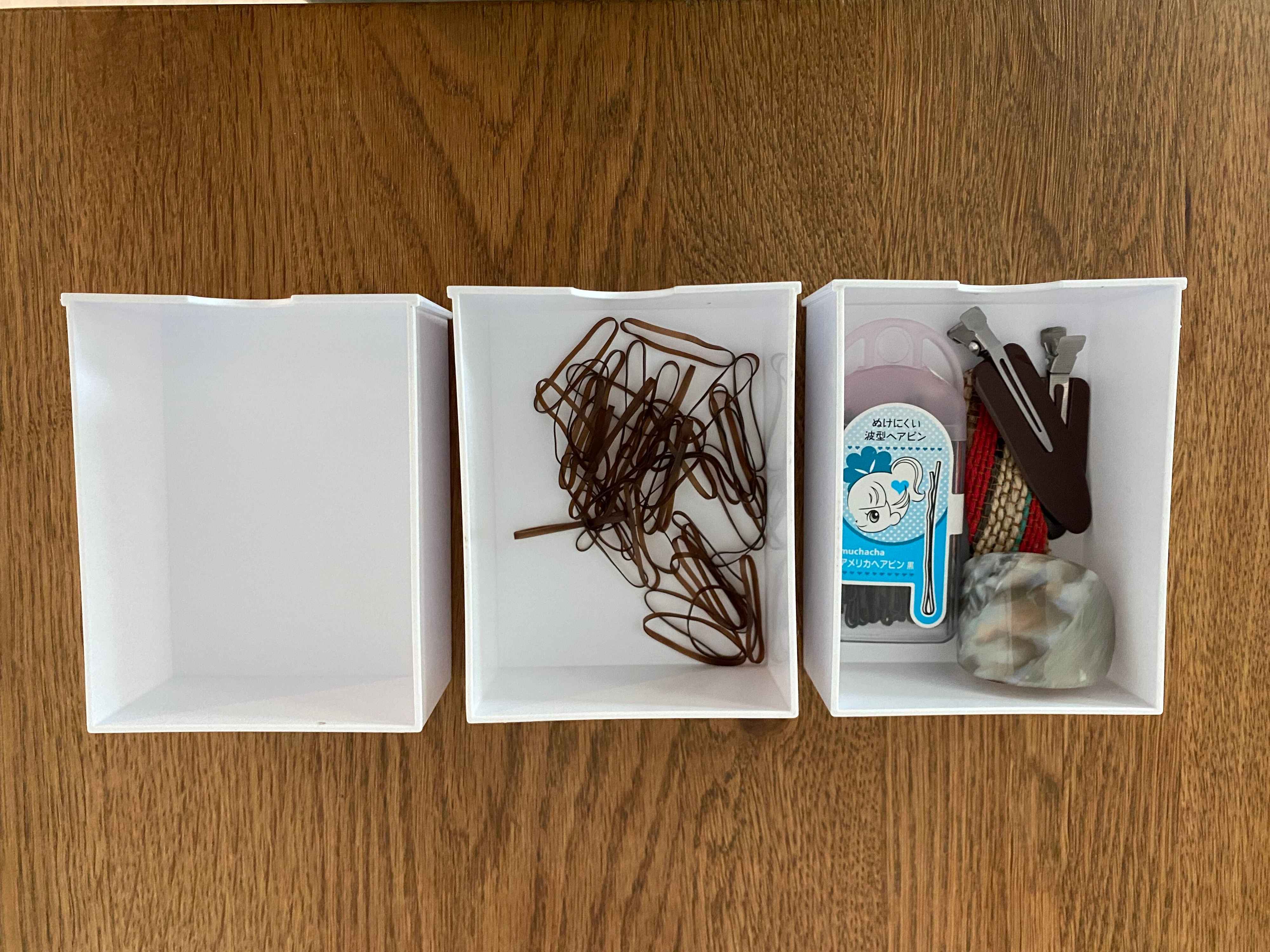 ヘア小物をまとめて片付けられる小さな引き出しが洗面台にあったらなぁ……と思ってましたが、洗面台の収納って奥行きがあまりなくて、なかなか収まるものが見つけられず。
