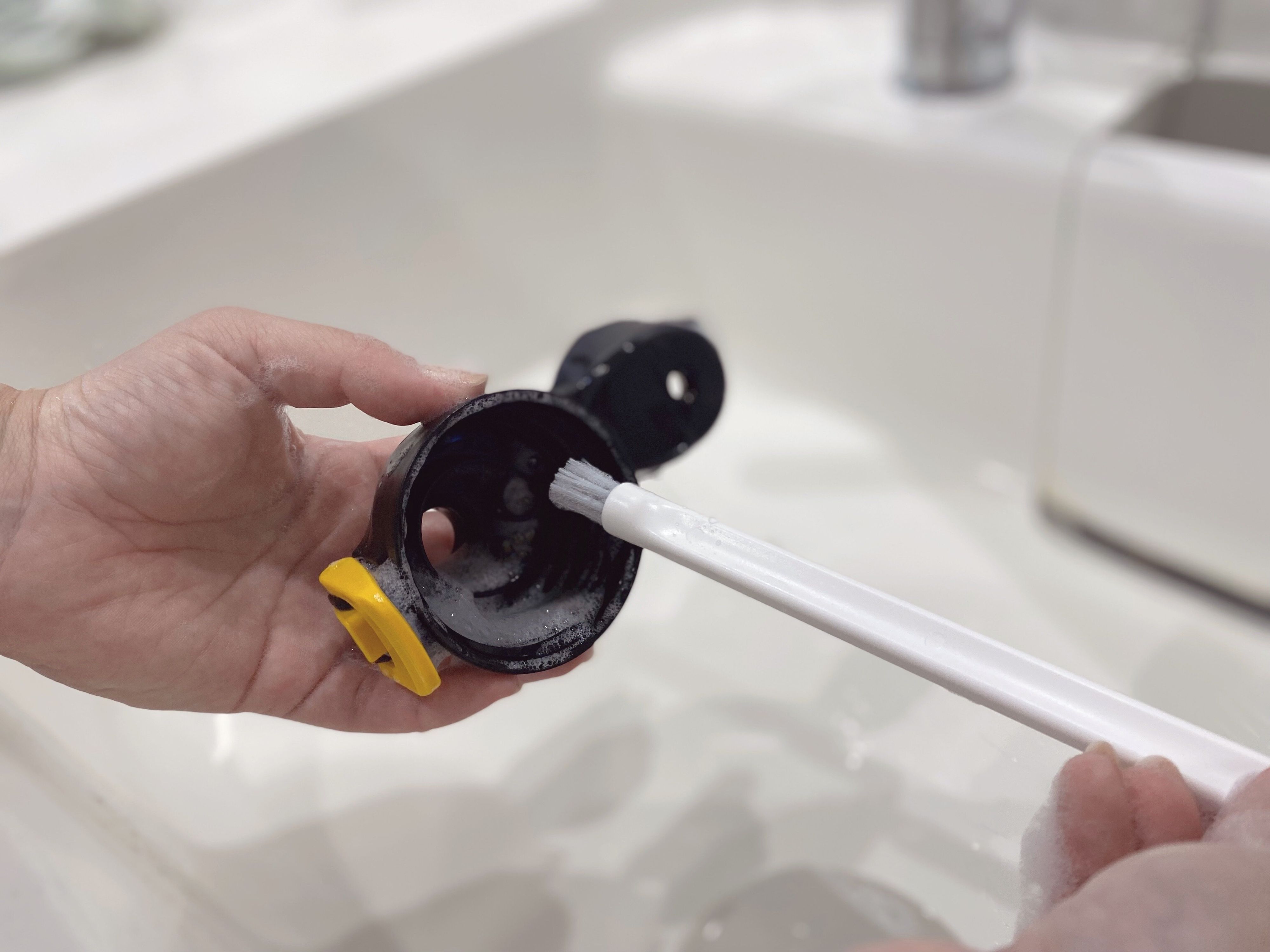 細部ブラシでこまかいところまで掃除をすると、「こんなに汚れていたの?」と驚くかもしれません。ハンドソープを出してササっと掃除するだけで清潔な空間になりますよ。