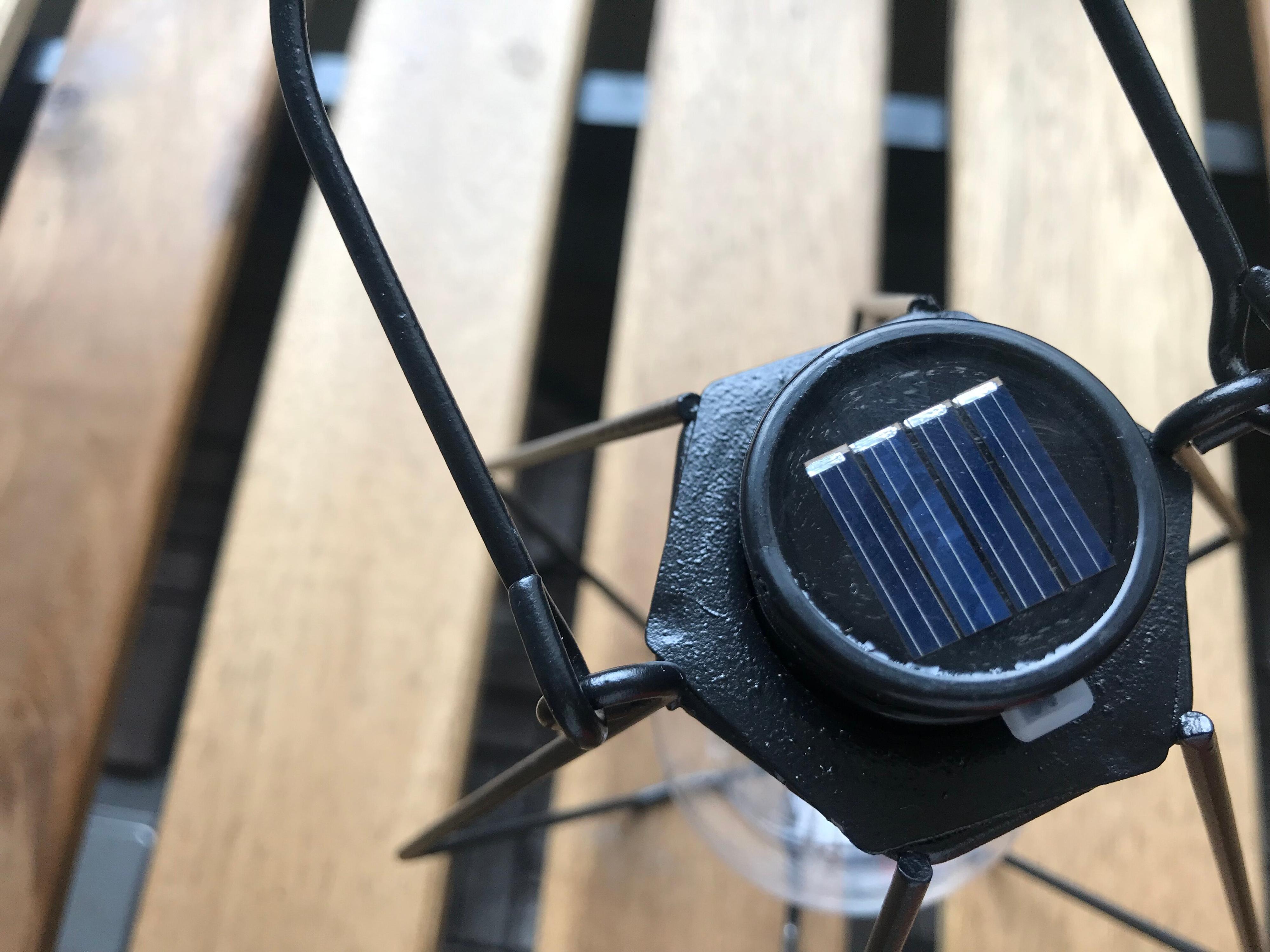 ソーラーライトという名前のとおり、ソーラーパネルを採用しているので日中の日光で発電します。もちろん、電池や充電は不要です。
