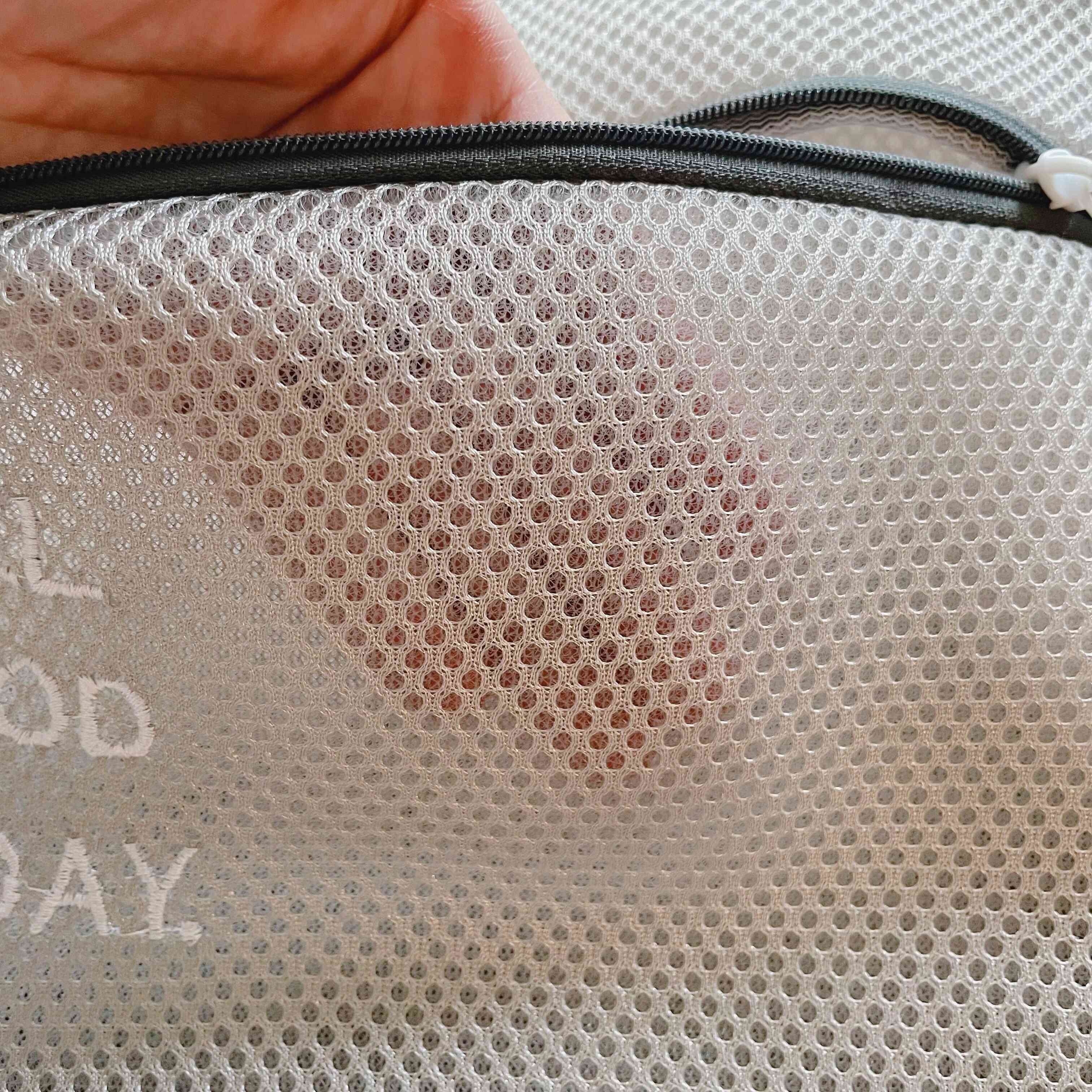 内側と外側の二重メッシュになっているので、引っ掛けやすいデリケートな生地でも安心して入れることができます。