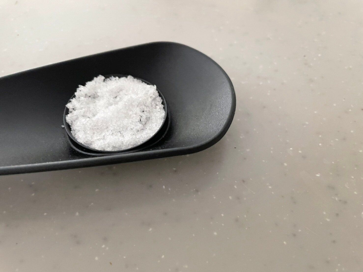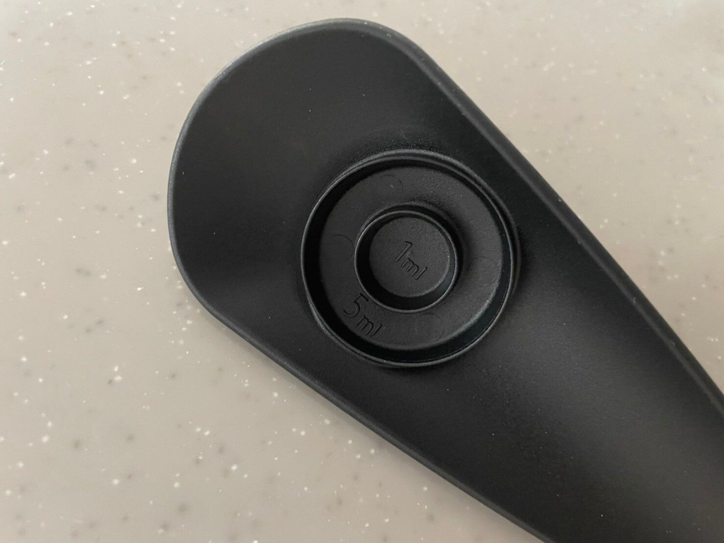 スプーンのくぼみ部分には、1mlと5mlを軽量できる仕様になっています。5ml=小さじ1なので、塩の軽量などに役立ちます。