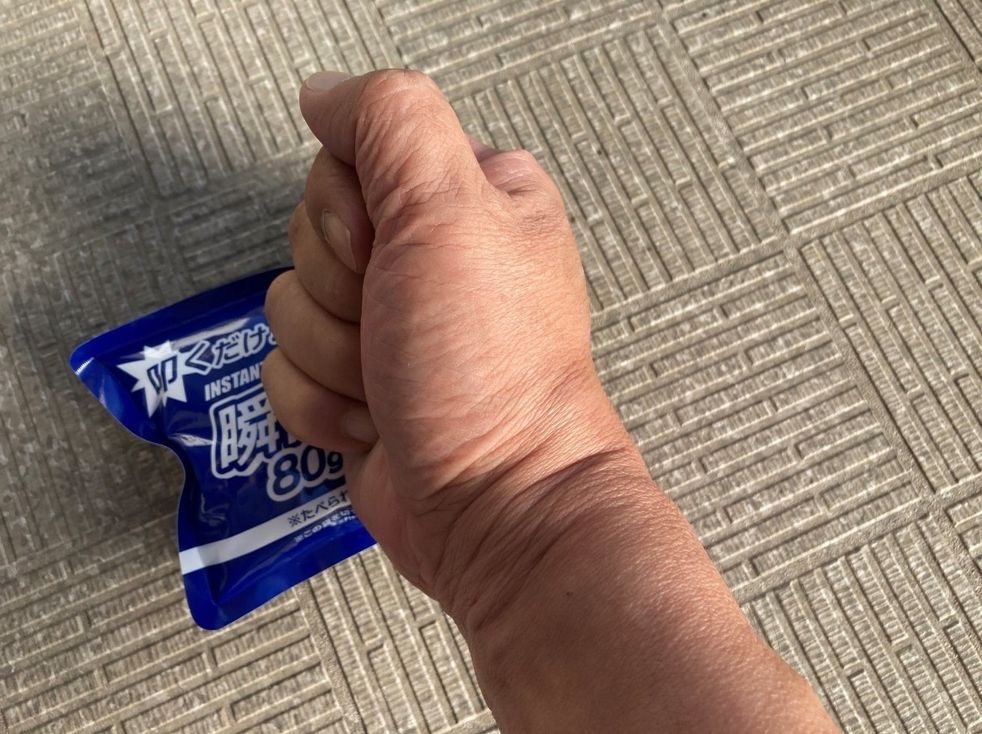ということで、気を取り直してふたたび叩く……叩く……力を入れて何度か叩くうちになにかが破裂したような感触が伝わり、文字通り「瞬間冷却」で袋自体があっという間に冷たくなりました!