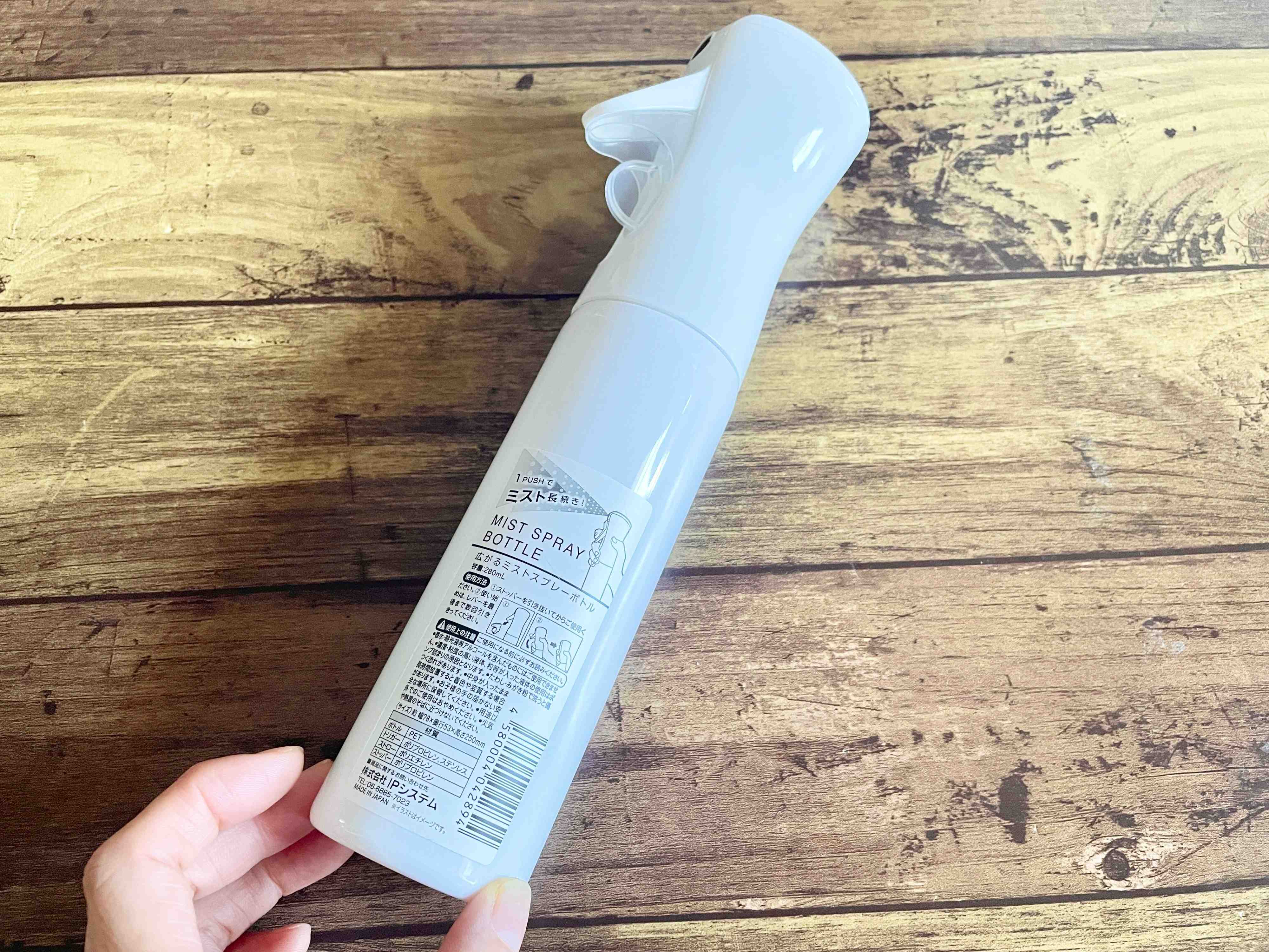 こちらは、細かいミストが広がって出るスプレーボトルなんです。しかも、ワンプッシュでミストが長続きしてくれる優れもの。