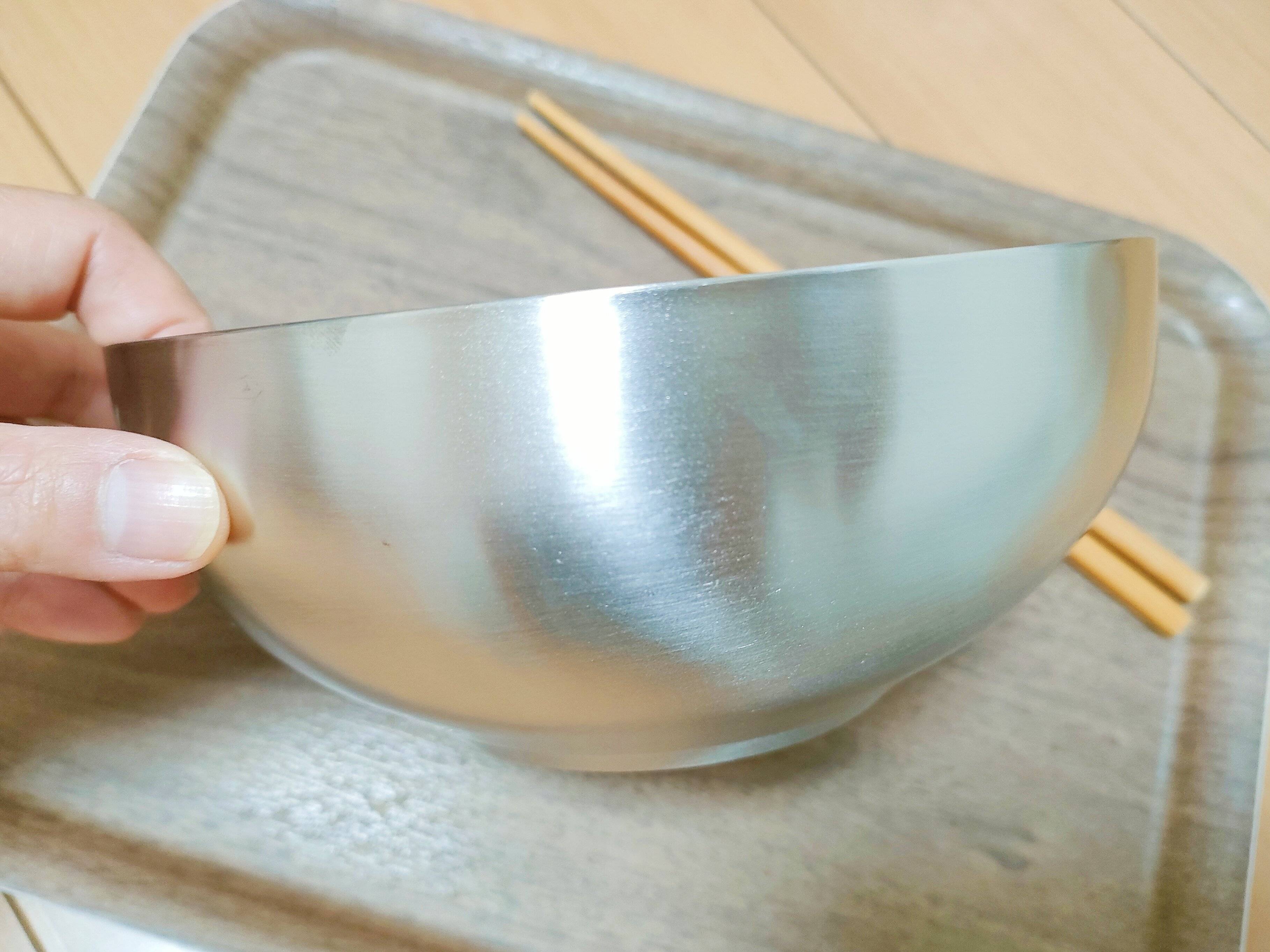 材質はステンレスで、サイズは直径約17.5cm。1人分のどんぶりサイズです。