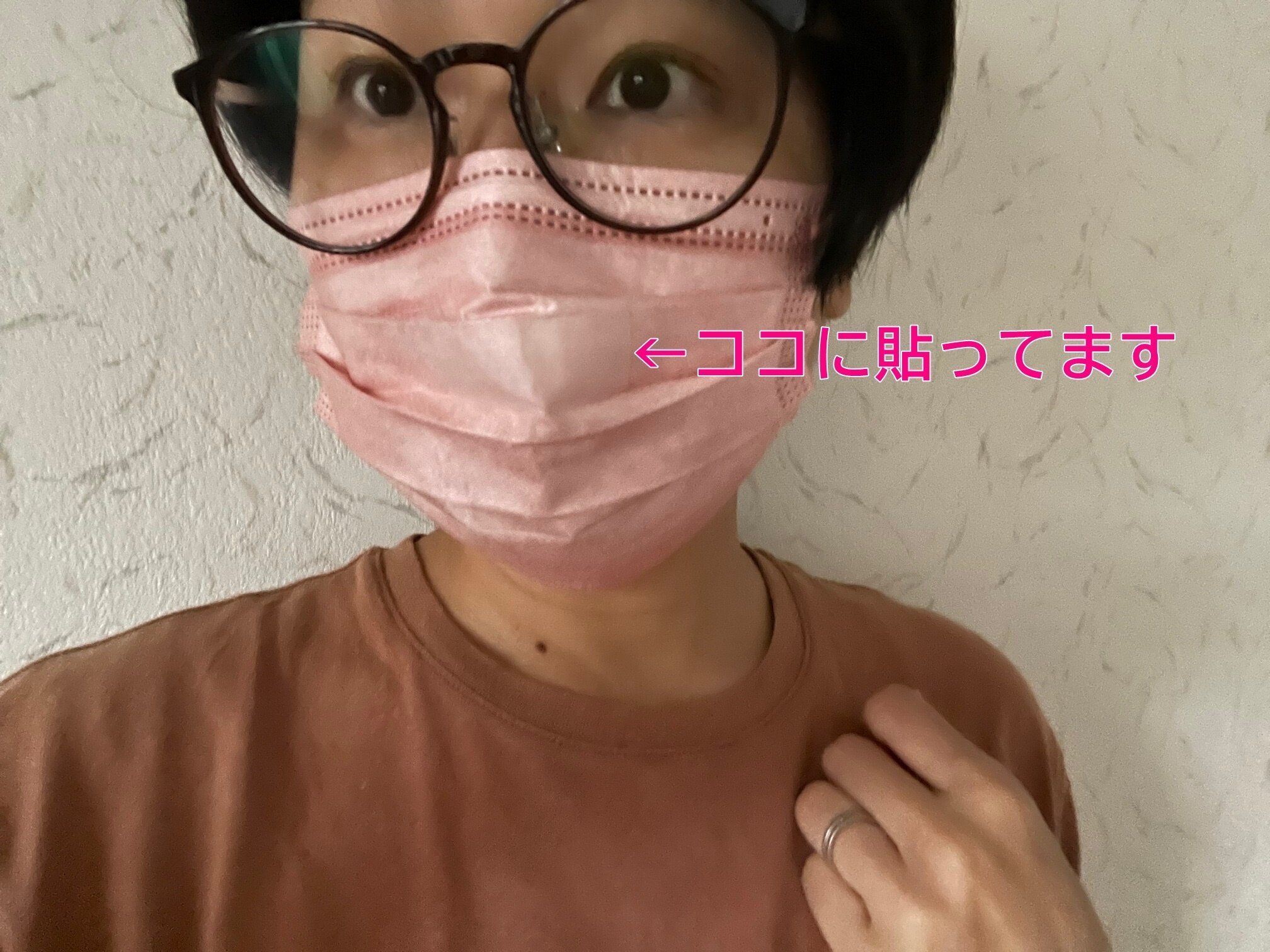 また、カラーマスクに貼ってもパッと見ほとんどわかりません。何か貼っていると気づかれにくいのもいいですね。