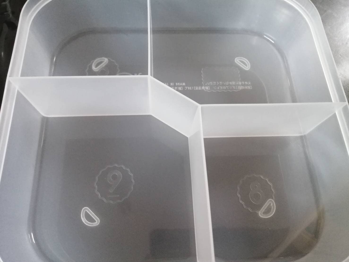固定式の仕切りなのでカップを複数重ねてもずれないし、様々な大きさのおかずカップが収納出来るので整頓下手な筆者にとって神アイテムだと感じました。