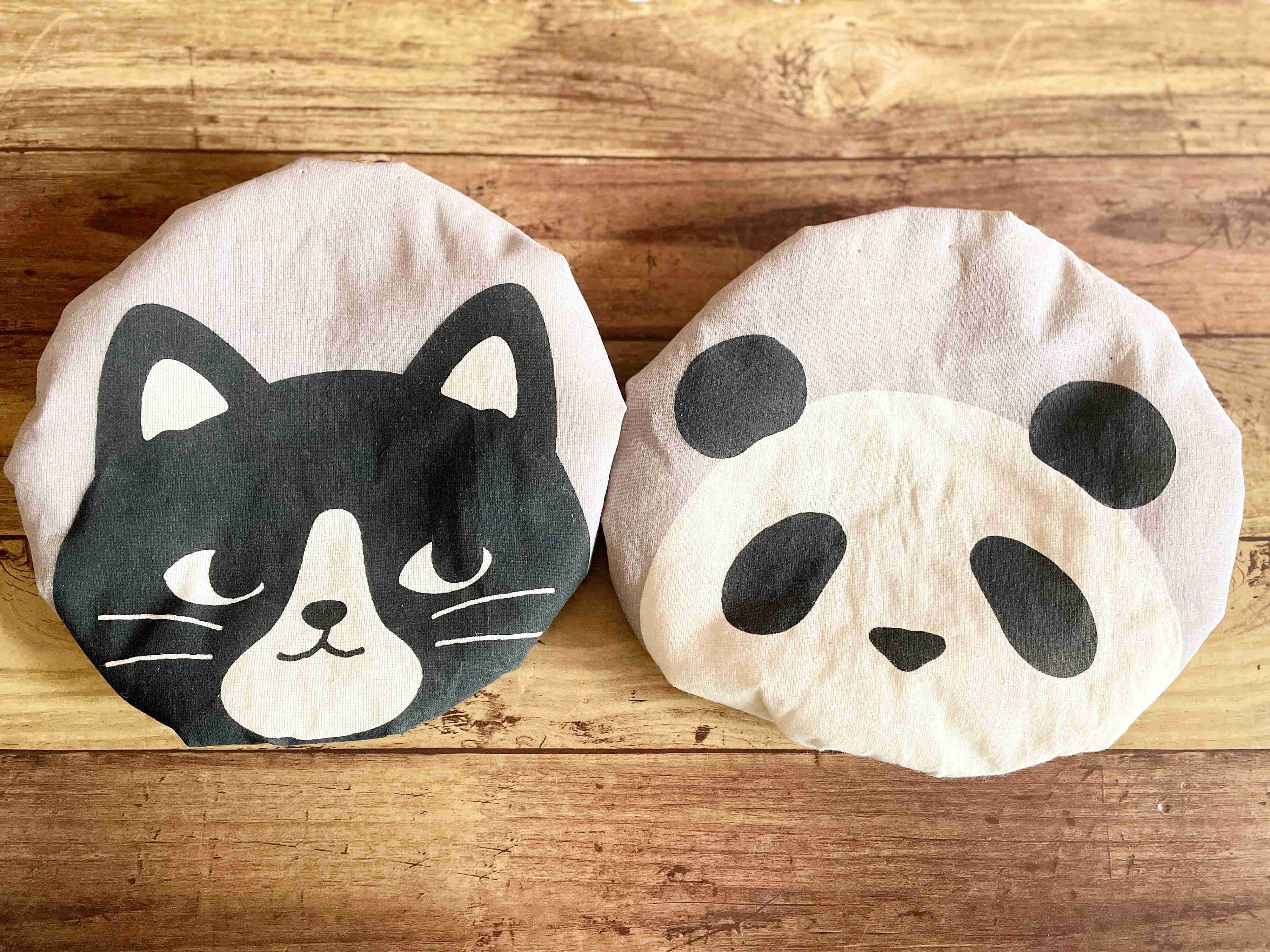 黒ネコやパンダの柄でとってもキュート。かわいらしい見た目ながら、色使いがシックなモノトーンだから子どもっぽくはなりすぎません。絶妙な感じのデザインですよね。