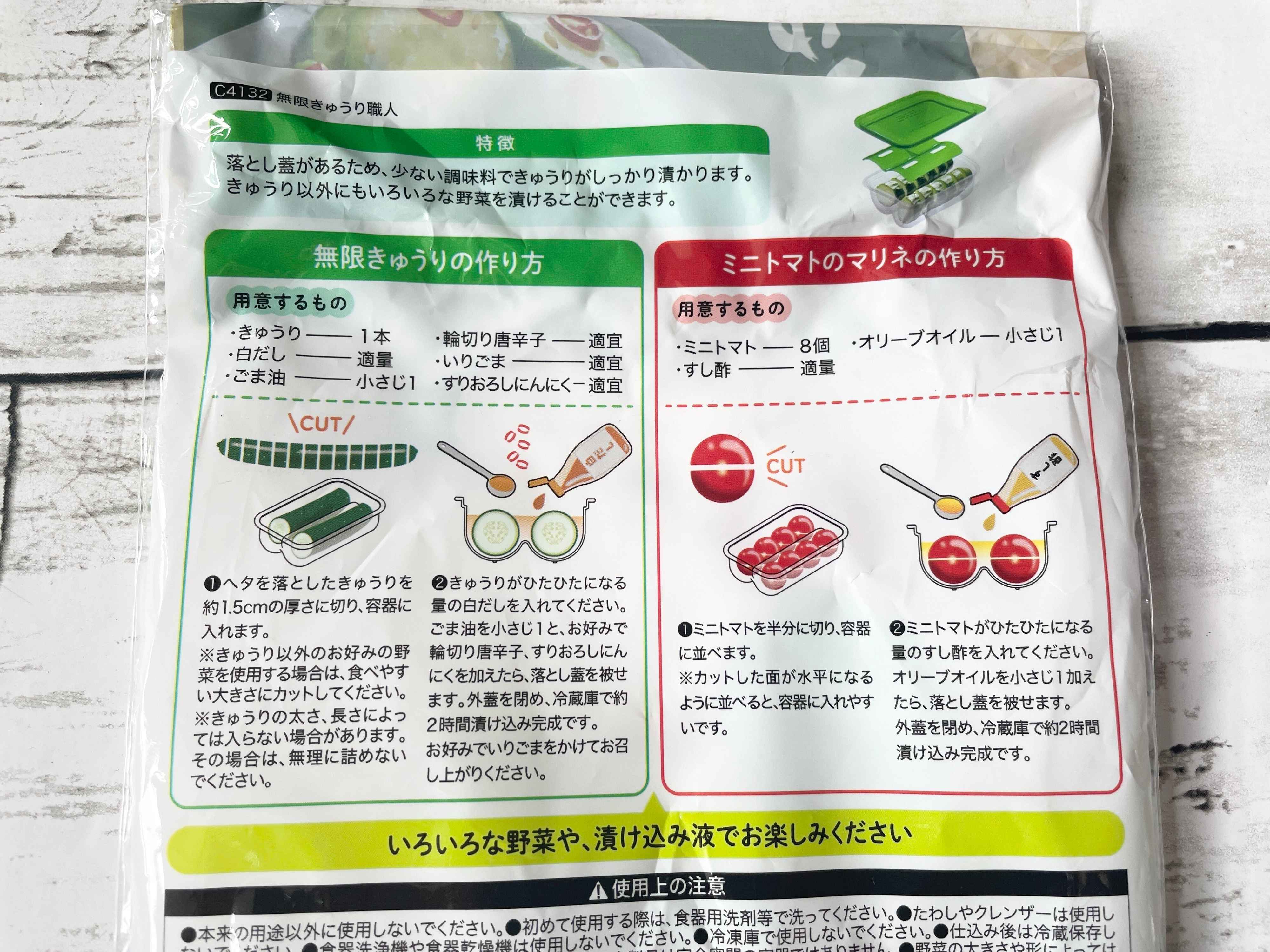 こちらは、きゅうりの浅漬けが簡単にできる調理アイテムなんですよ。しかも、「味つけたまごメーカー」のように少ない調味料で漬けられるのが特徴。