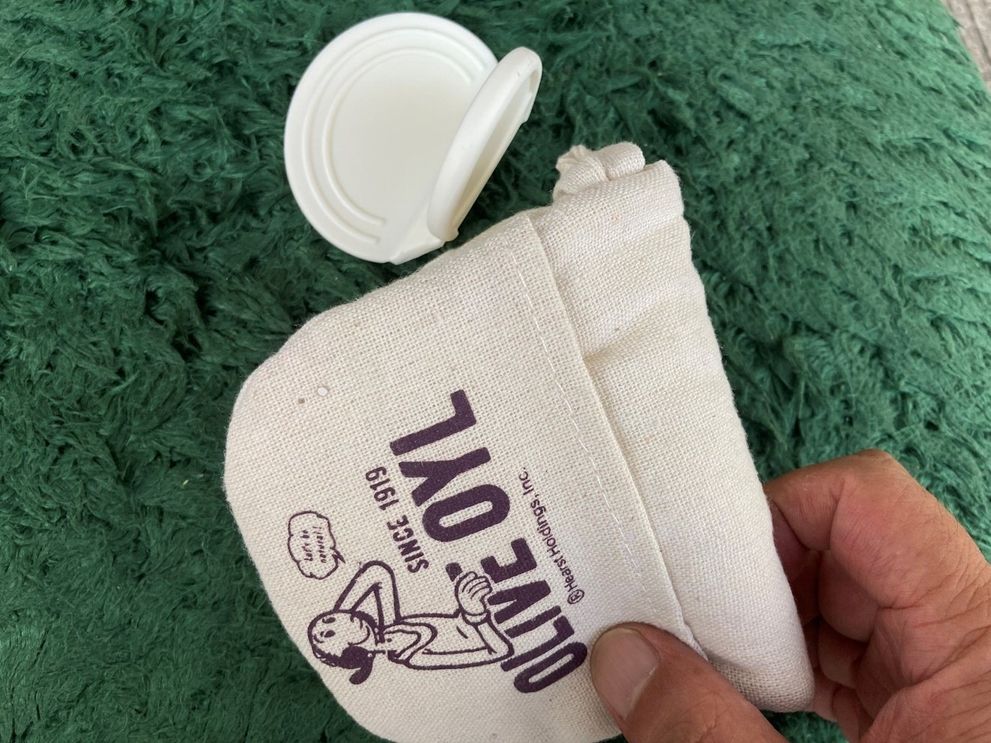 最初にご紹介するのは、「ポパイ」のキャラクターがデザインされた鍋つかみ。絵柄は主人公ポパイが描かれたものと、恋人のオリーブが描かれたものの2種類で、好きなほうを選べます。今回私は、子どものころに好きだったオリーブの絵柄を迷わず買いました。