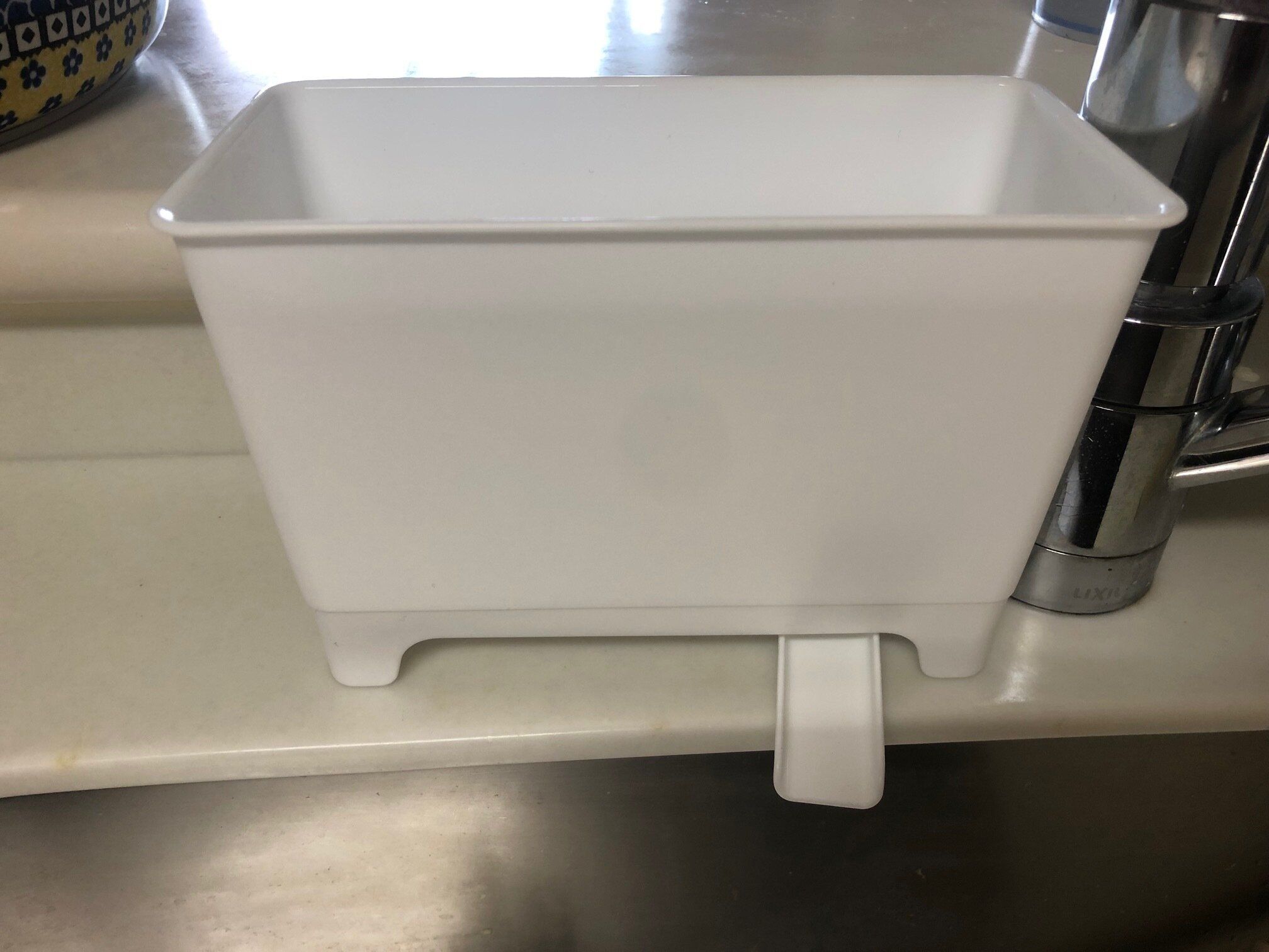 三角コーナーなどの水切りごみ入れは、シンクの中に置くことが多いですよね。でも、こちらは排水ノズルのおかげでシンクの外へ設置ができます。