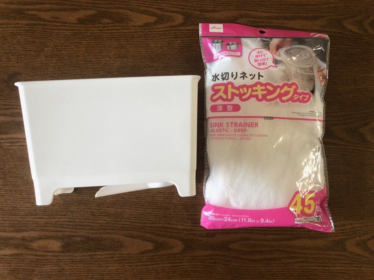 これだけでごみ入れとして使うのは不安だという場合でも、ダイソーのストッキングタイプの水切りネットがピッタリ。シンプルな見た目で、キッチンのインテリアなども邪魔しません。ぜひチェックしてくださいね。