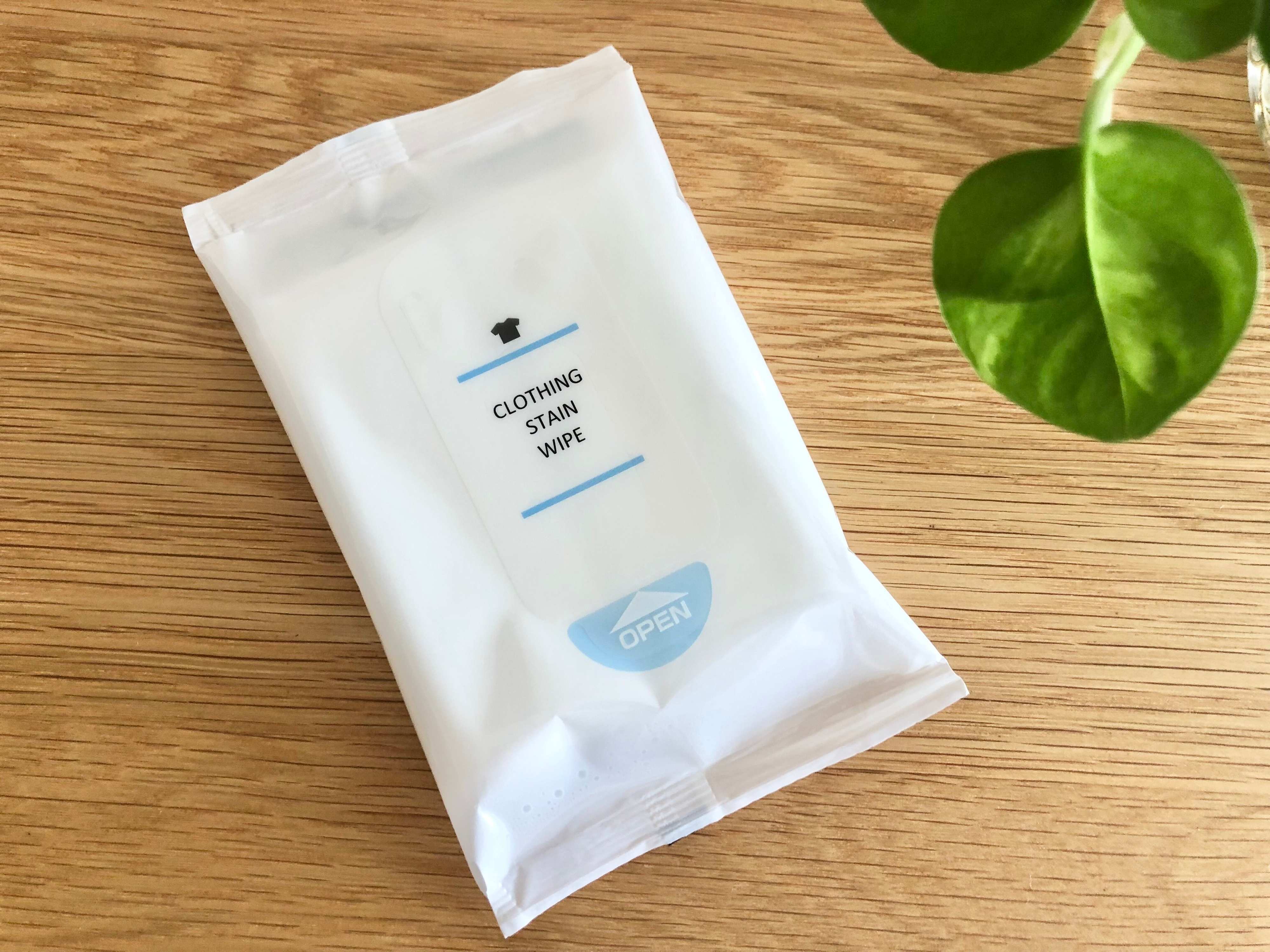 また、携帯するものなのでデザインも結構重要ですよね?こちらの「衣類用シミとりシート」は、シンプルでオシャレなデザインなんですよ。
