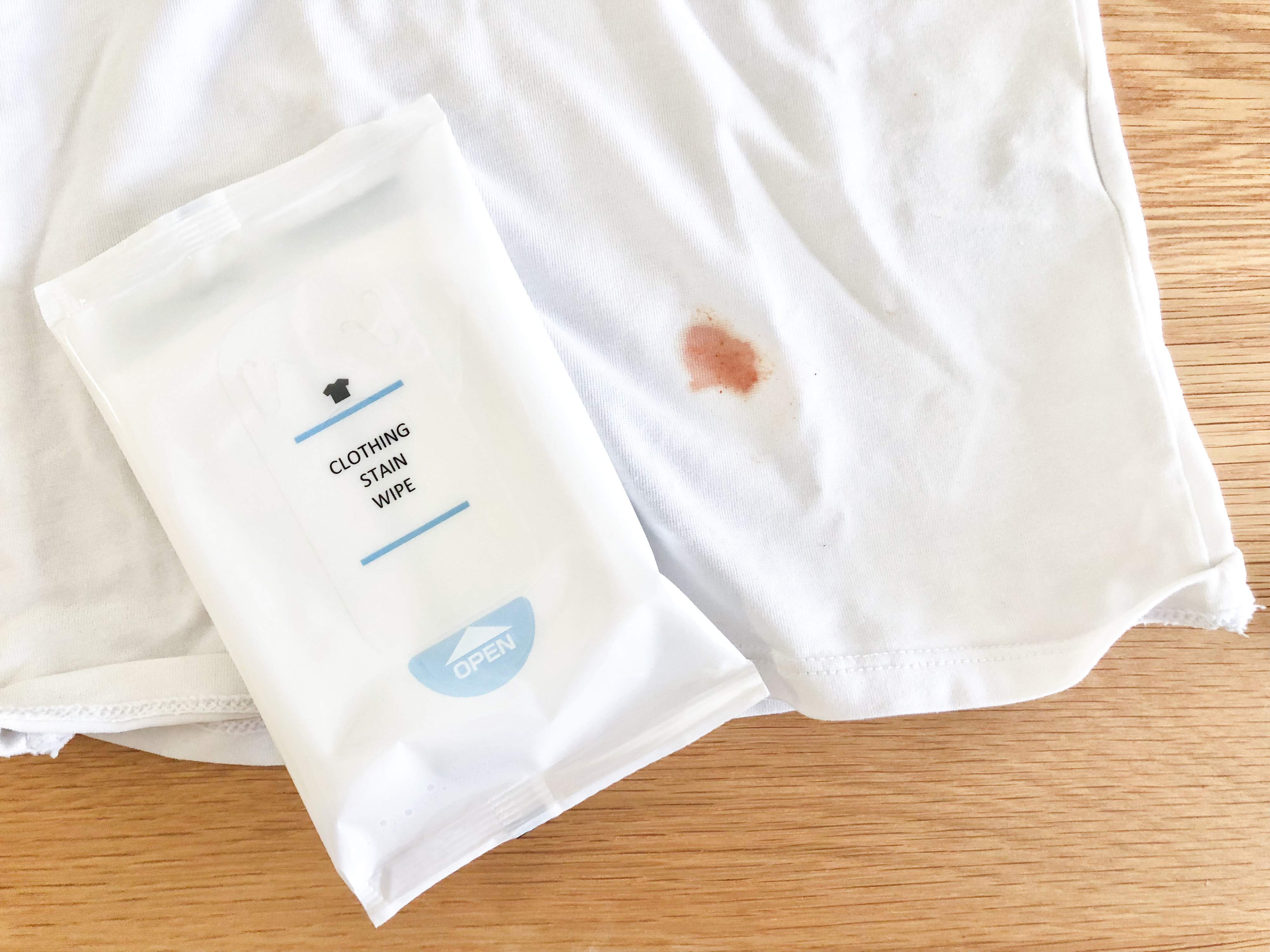 ただし「衣類用シミとりシート」はあくまでも応急処置なので、帰宅後には洗濯が必要です。また、全てのシミを落とせるわけではなく、コーヒーや醤油、ケチャップやソースのシミなどに使用できます。