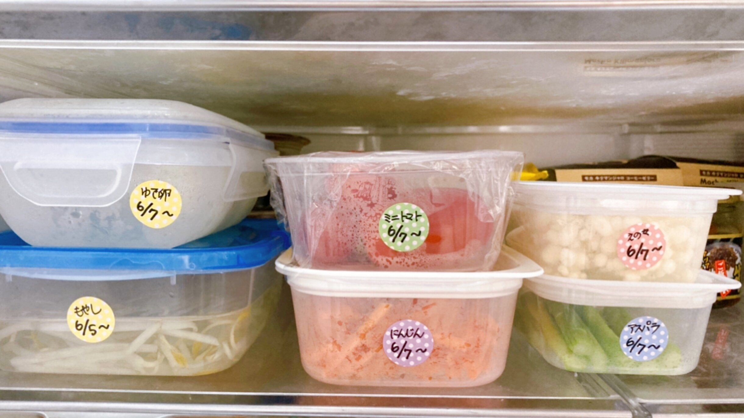また、カットした野菜や作りおきおかずもいつ作ったのか?を書いて貼っておくことで食べる優先順位が明確になります。