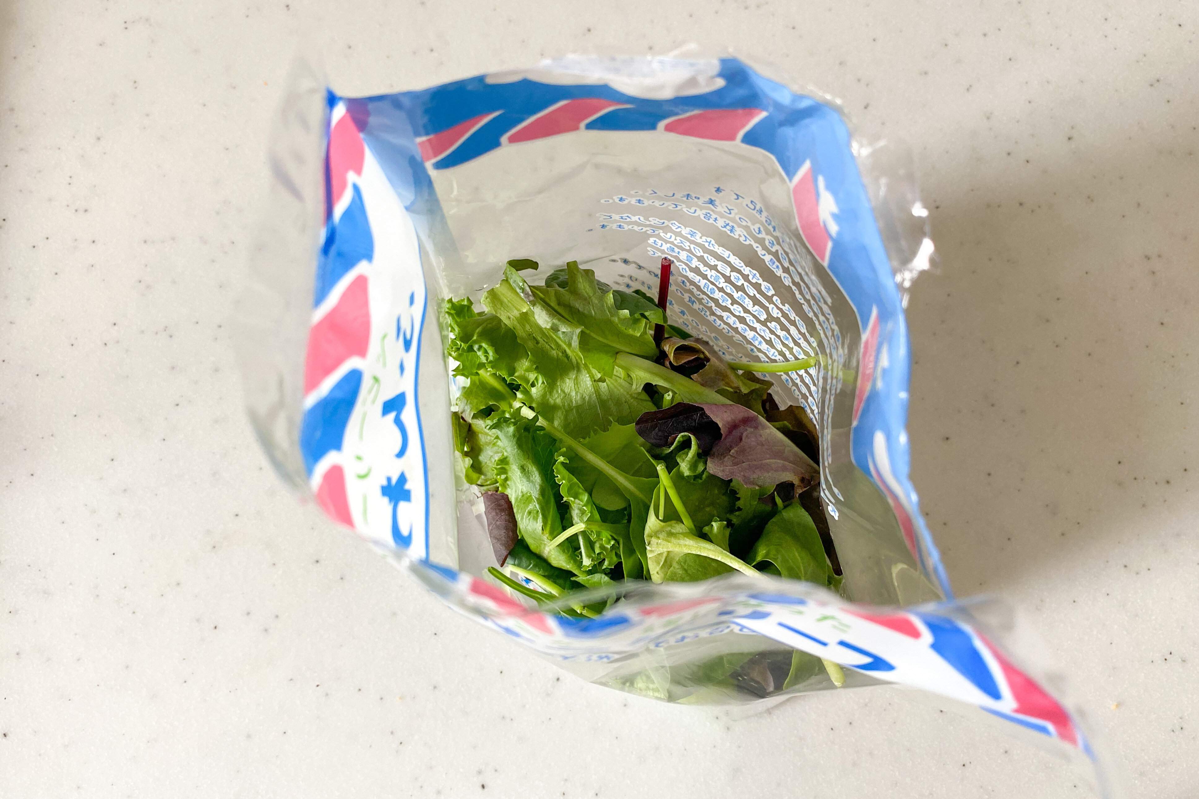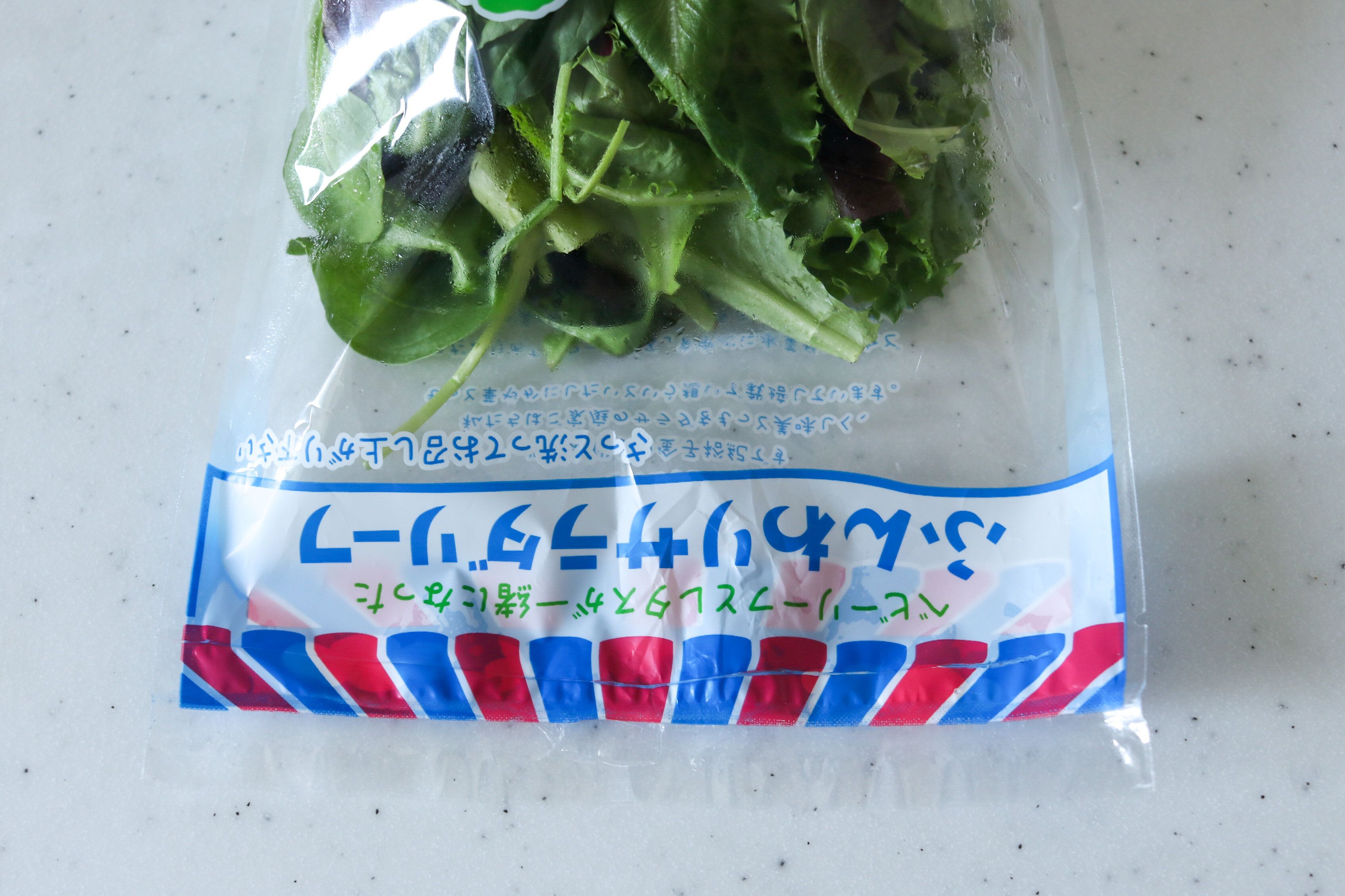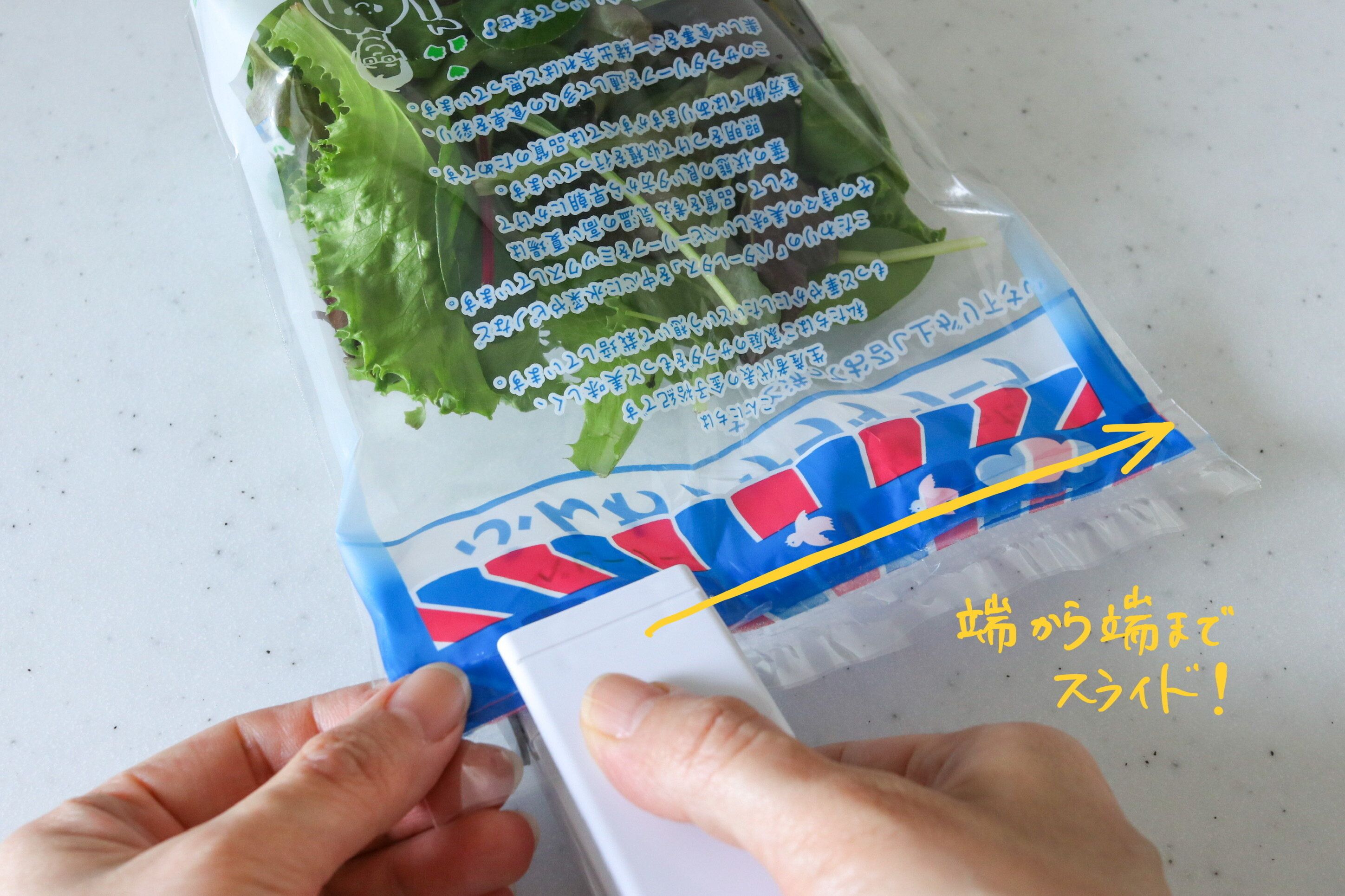 使い方は簡単。一度開封したサラダの袋でご説明します。