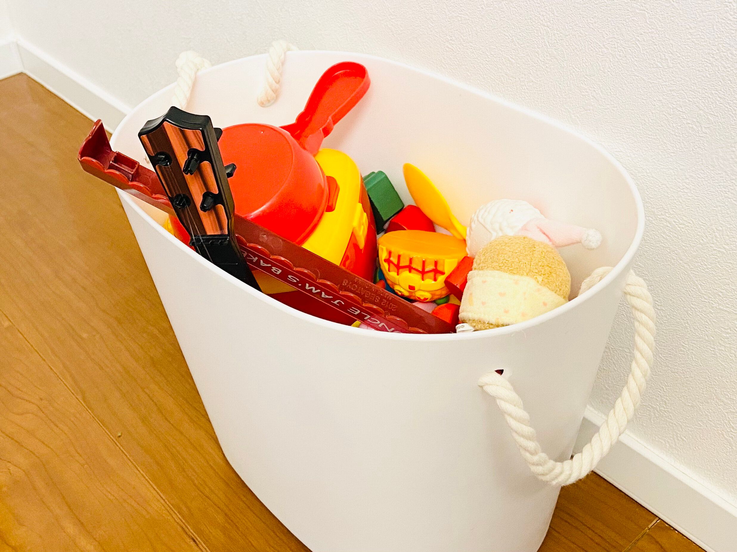 上からお気に入りの布などをかければ子どものおもちゃなどもごちゃついて見えません。