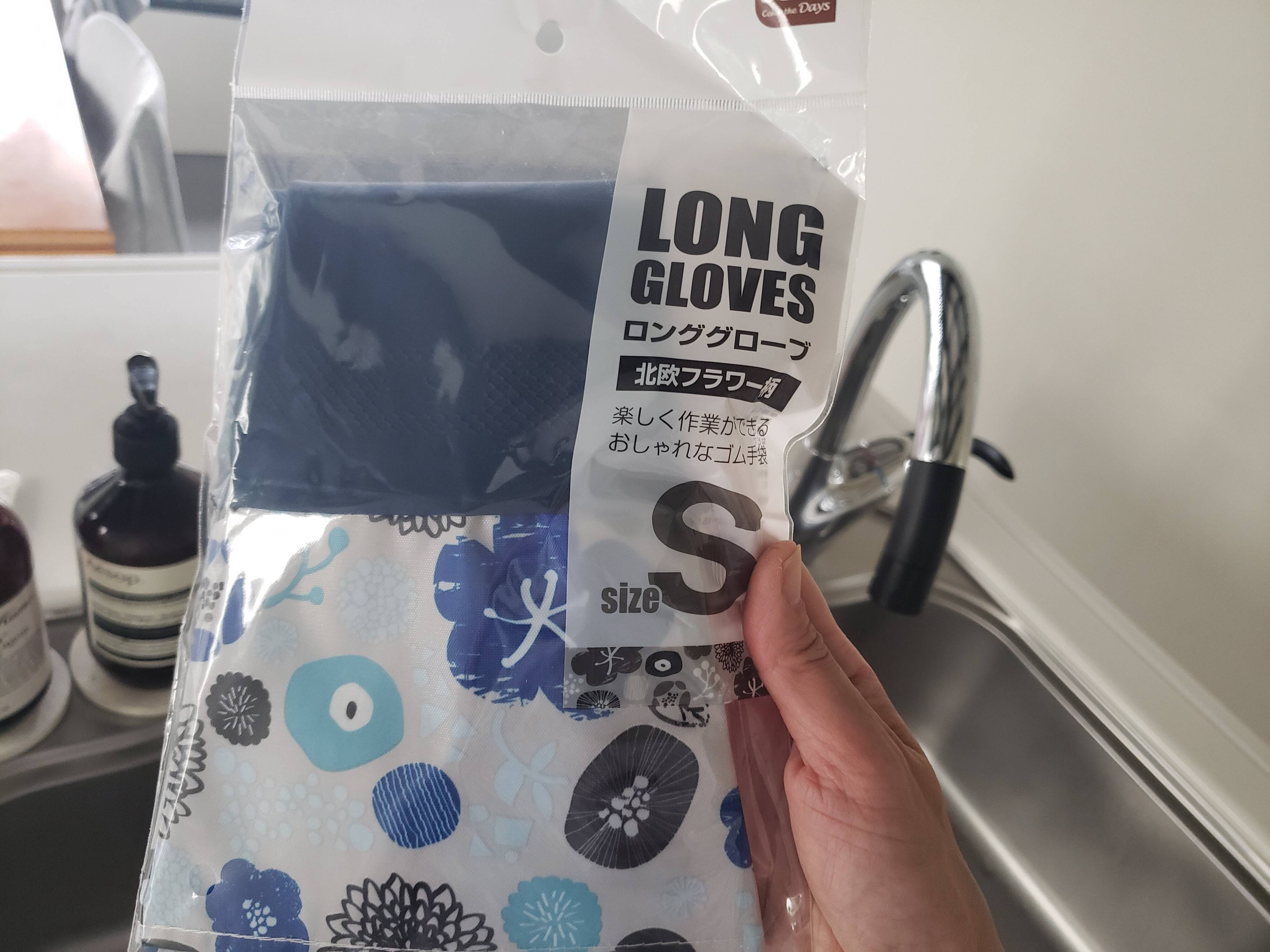 今回購入したゴム手袋は北欧柄のようなもの。ロング丈はやっぱり外せませんでした。