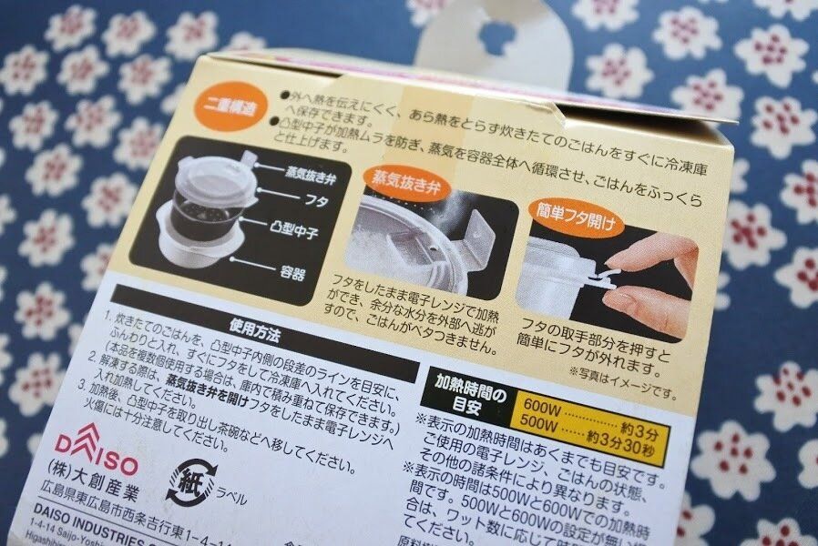 100円ショップダイソーで売っていた『二重構造でふっくら美味しい冷凍保存容器ご飯一膳』です。嬉しい日本製です!