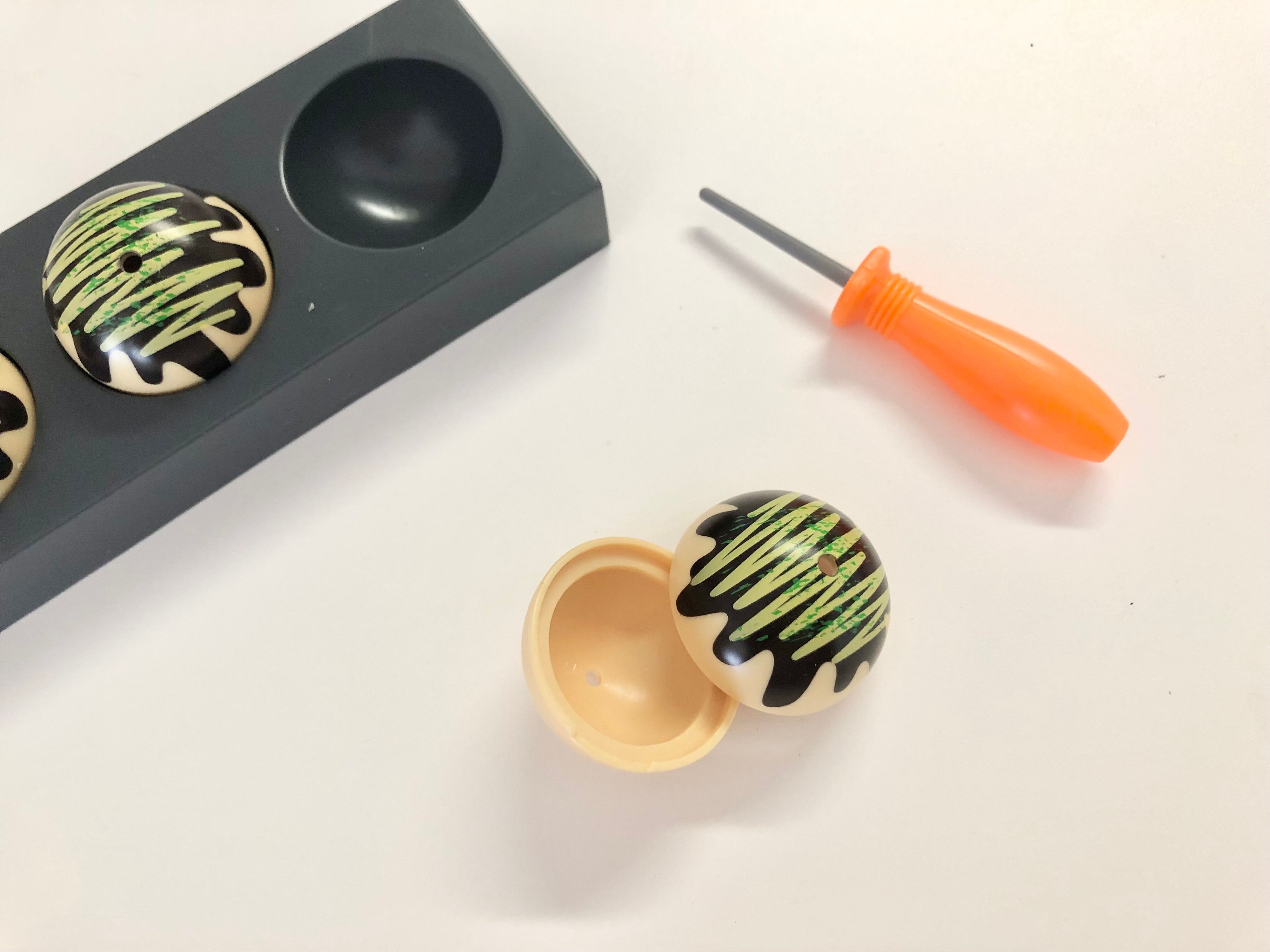 開ける時は、たこやきに溝があるので、爪をひっかけて開けて下さい。