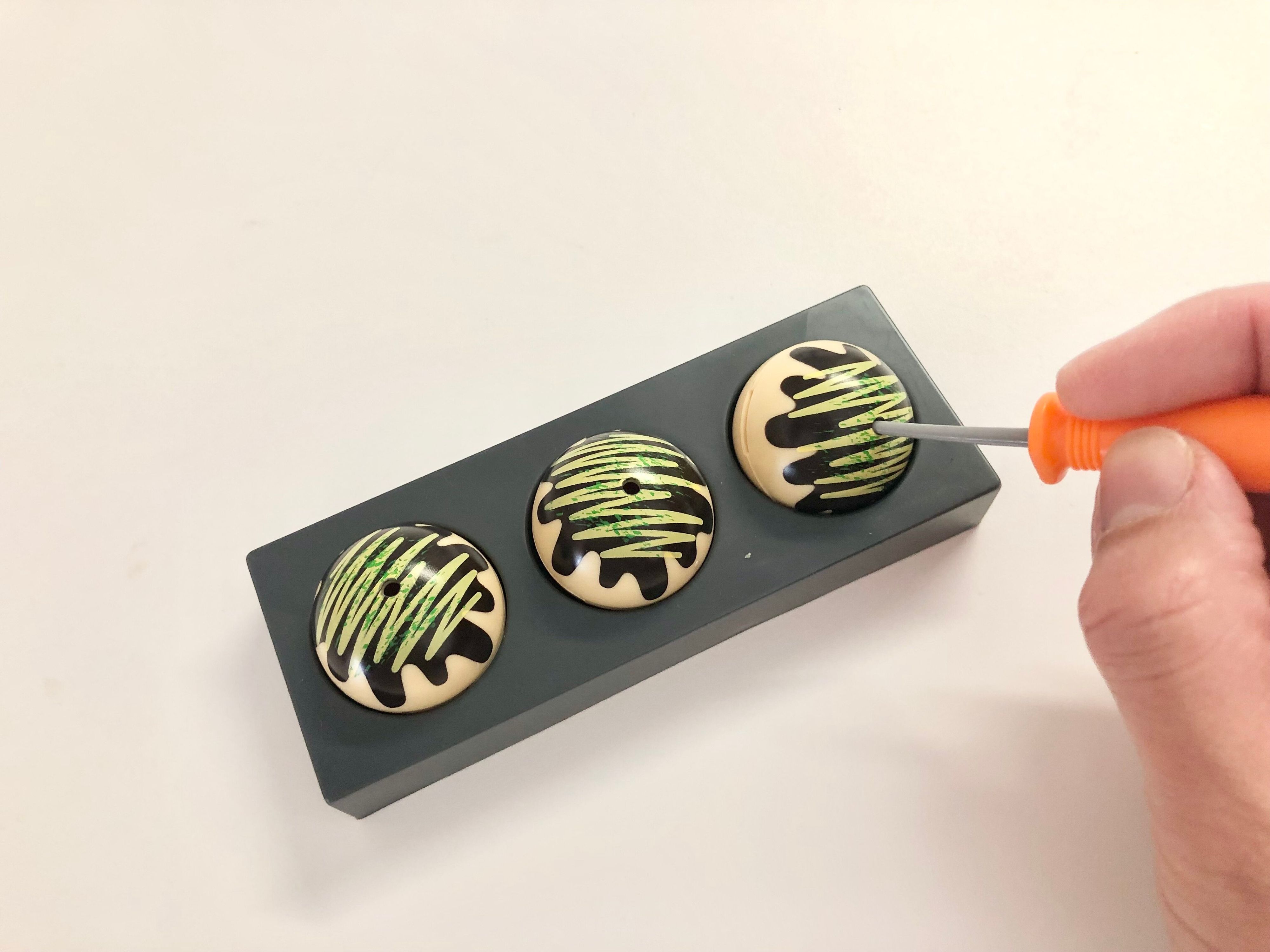 たこやきには穴があいているので、穴にピックを差し込むとひっくり返しやすくなります。
