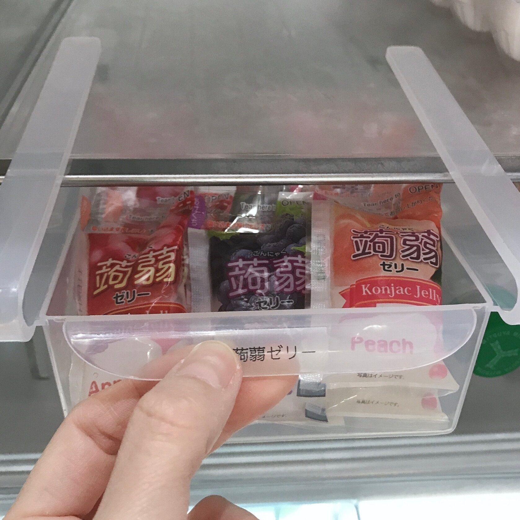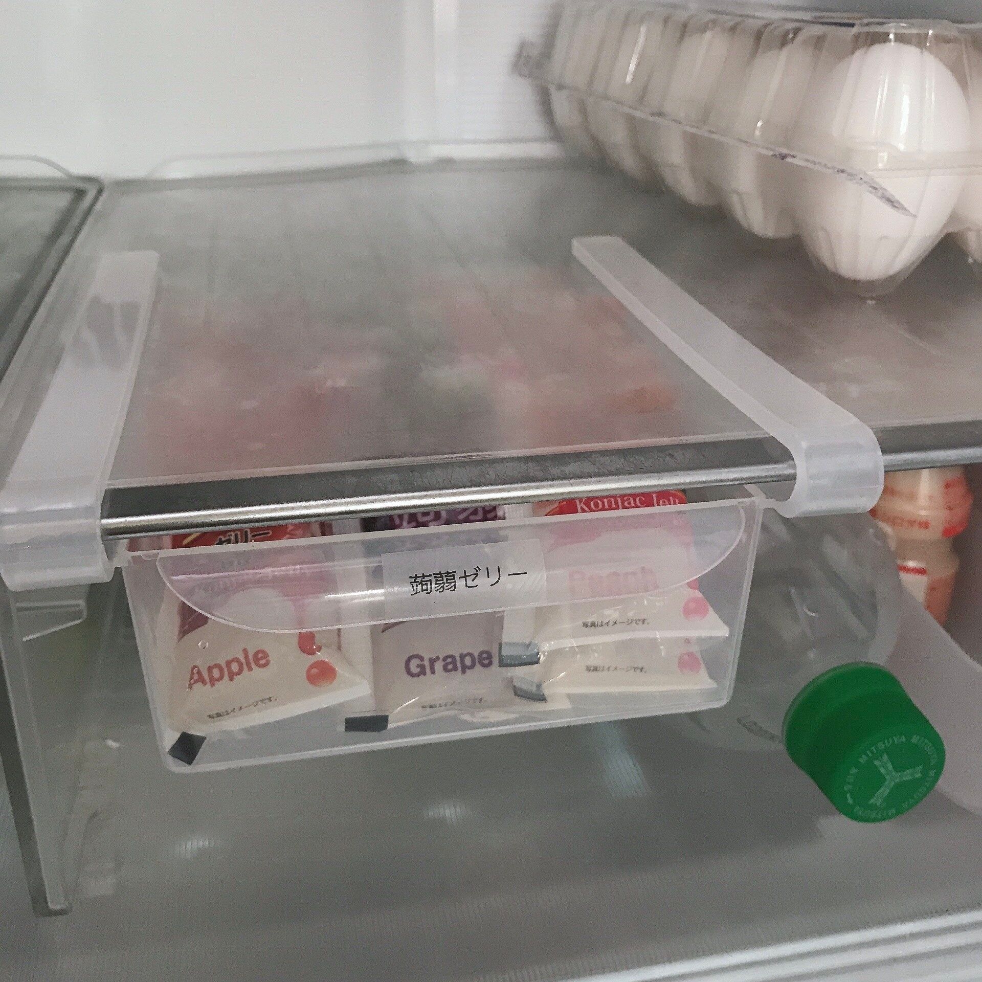 我が家では常備しているこんにゃくゼリーをこのトレーに収納しています。