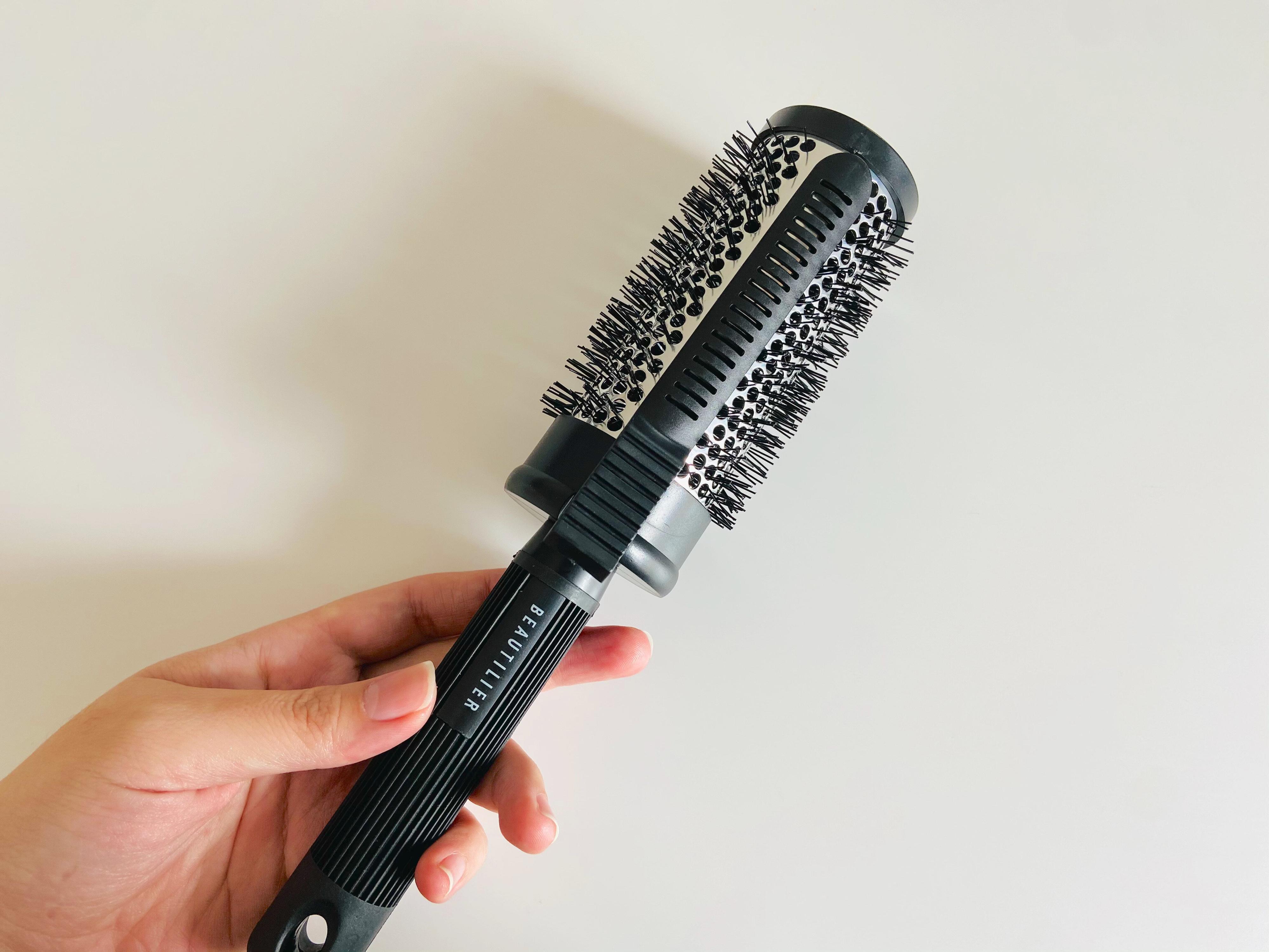 ブラシにはクリップが付いていて、髪を取り分けて挟むだけで自分でブローする際も簡単にテンションがかけやすいので、簡単に艶のある内巻きブローやストレートスタイルがつくれます。またブラシの芯の部分が【穴の空いたアルミニウム素材】なので効率よくドライヤーの熱を髪に伝えることができますね。