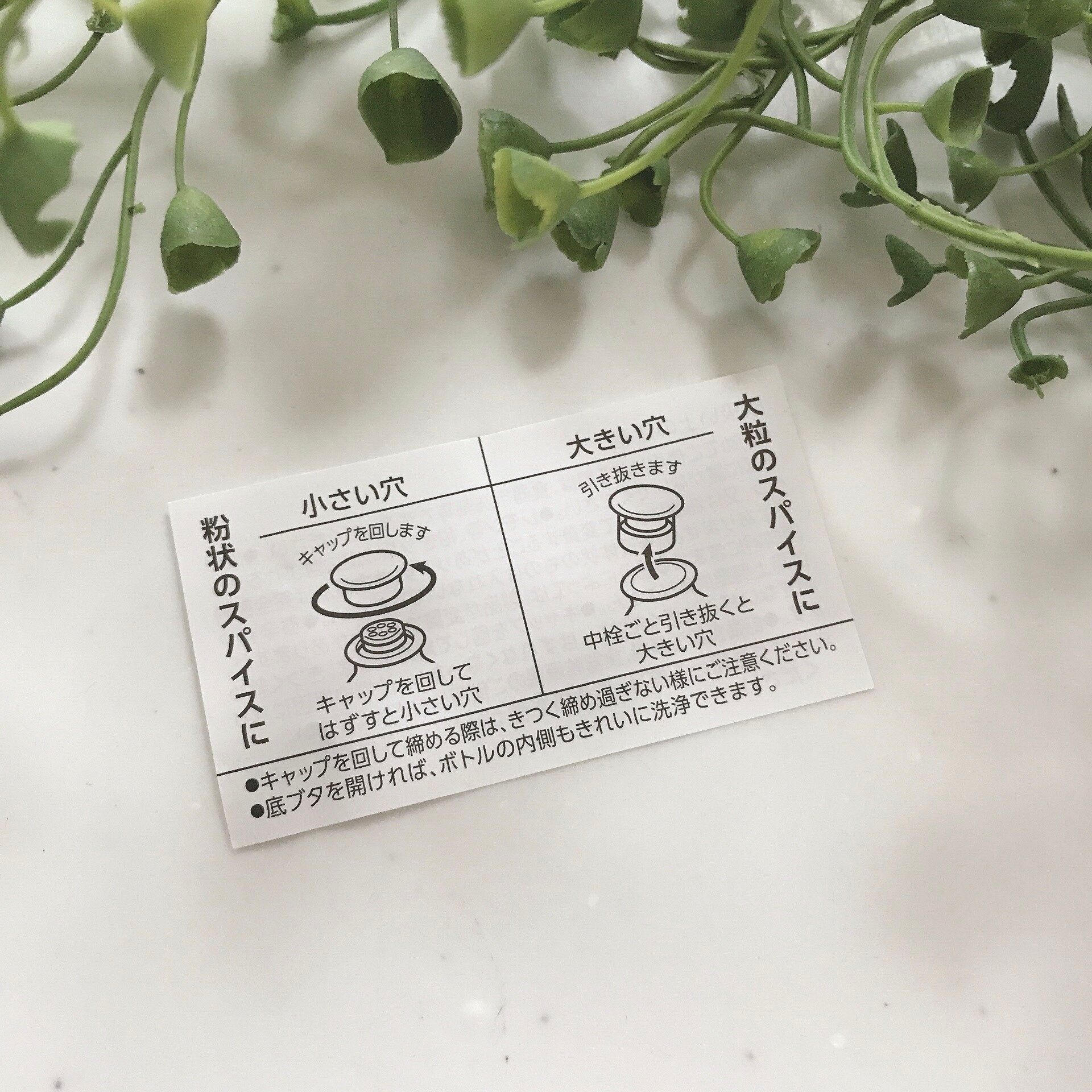 このスパイスボトルは穴の大きさが2種類に使い分けることができます。