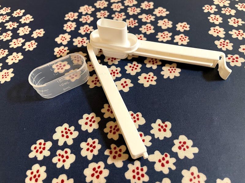 キャップは計量カップになっていて、小さじ1(5ml)小さじ2(10ml)大さじ1(15ml)が量れるようにようになっていますよ。