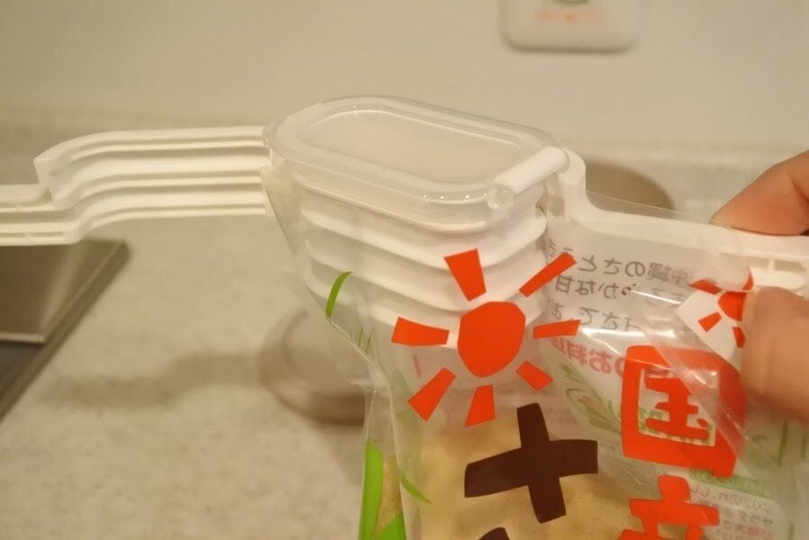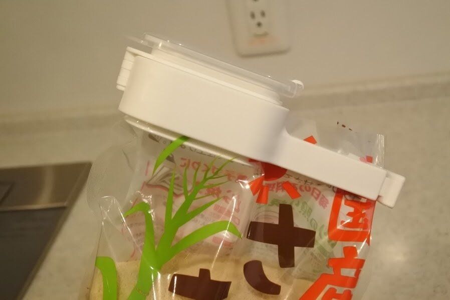 砂糖や塩などの袋入り食品を容器に詰め替える作業って結構めんどくさいですよね。それがこの袋クリップを取り付けておけば、面倒な詰め替えもラクになり時短にもなったのですごく便利だな!と思いました。