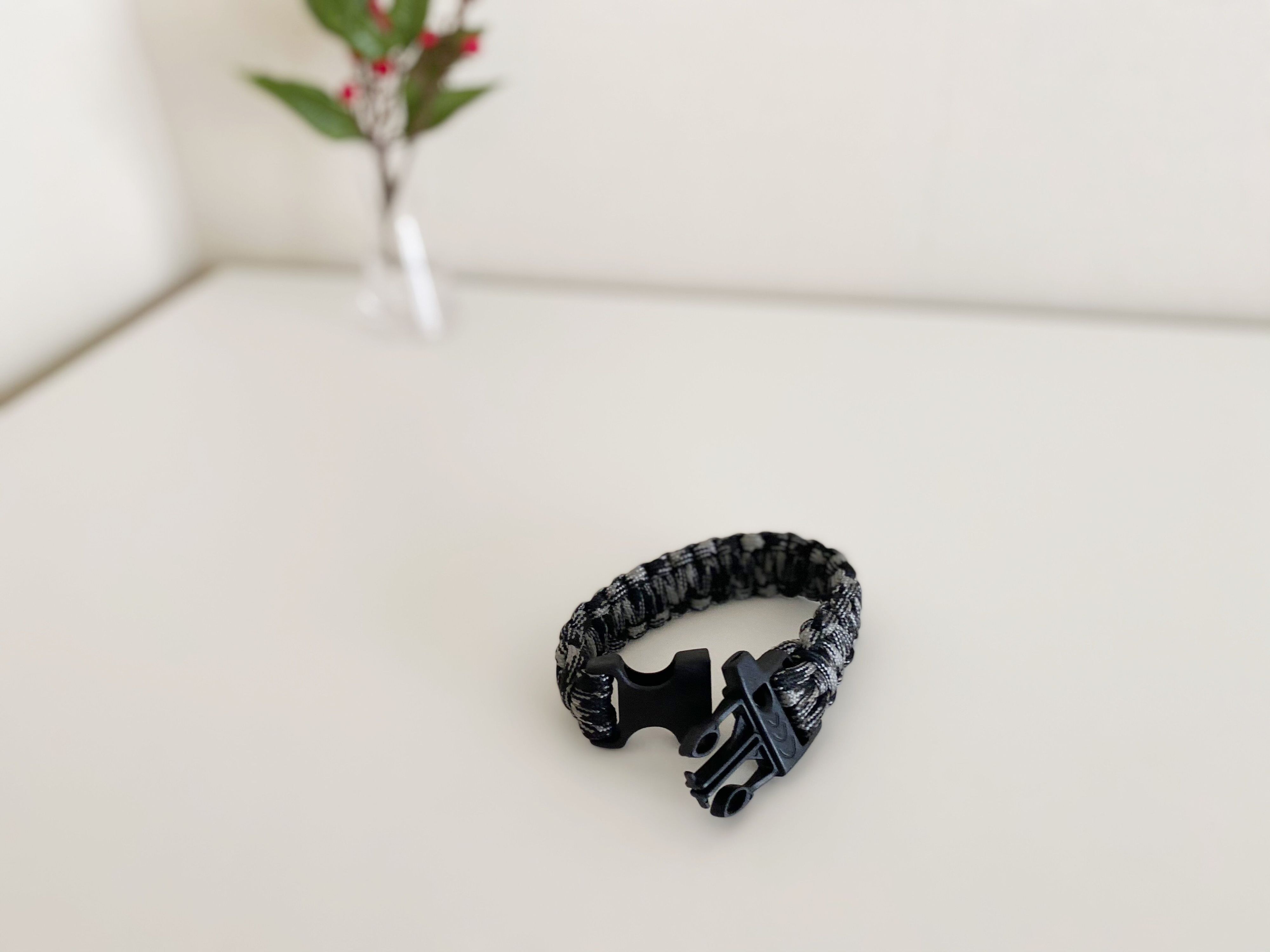 解けばパラシュート素材でできたロープとして使えるブレスレット。