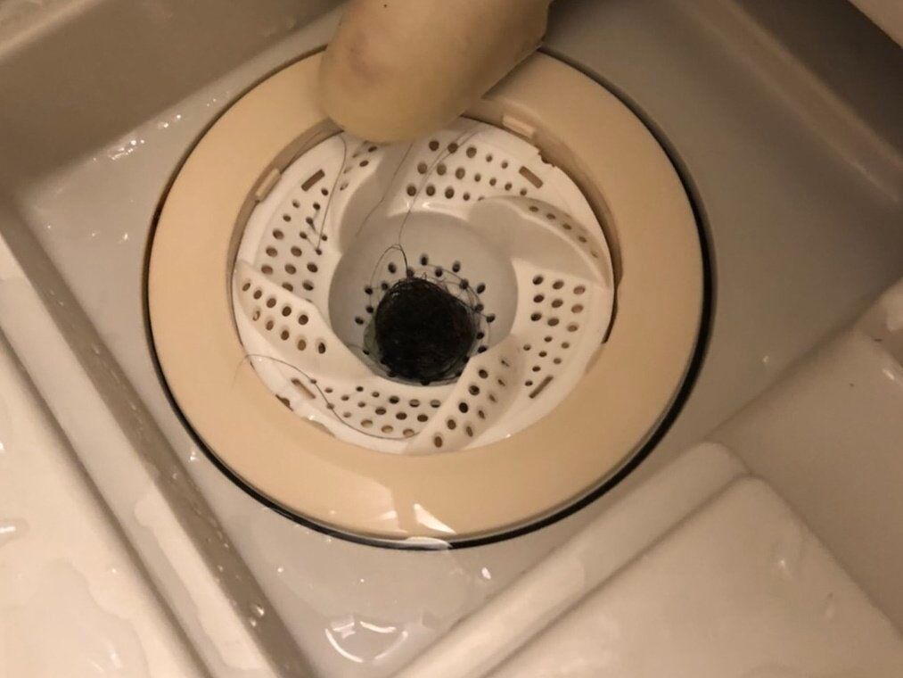 くるっとキャッチをセットしてふつうに入浴してみると、ちゃんと真ん中にほとんどの髪の毛が集まっているじゃないですか!おおすごい!単純なつくりなのに、きちんと渦の力が発揮されています!後はカパッと外して、ひっくり返してポイで排水溝の掃除は終了です。