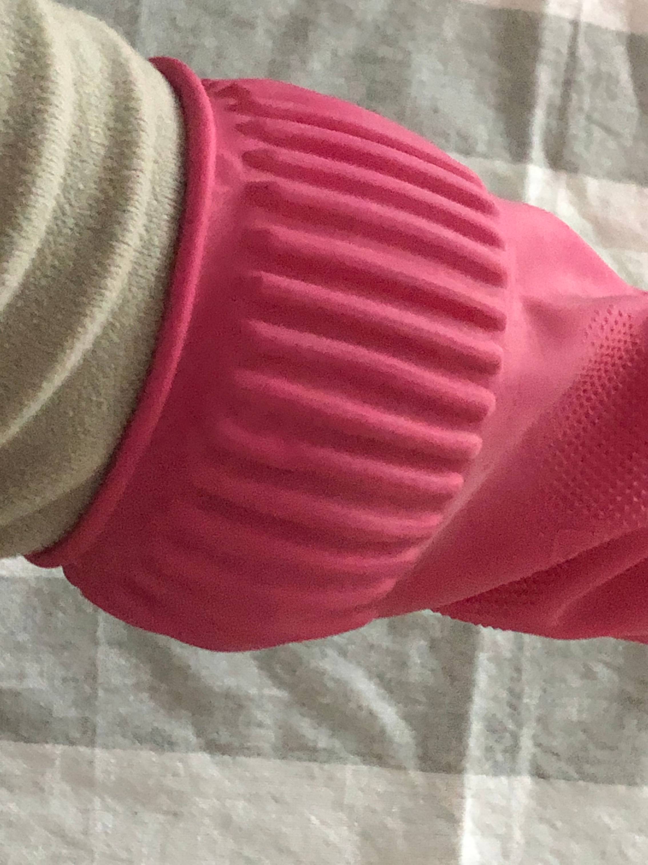 家事用手袋を着用するとき、腕まくりをしますよね。