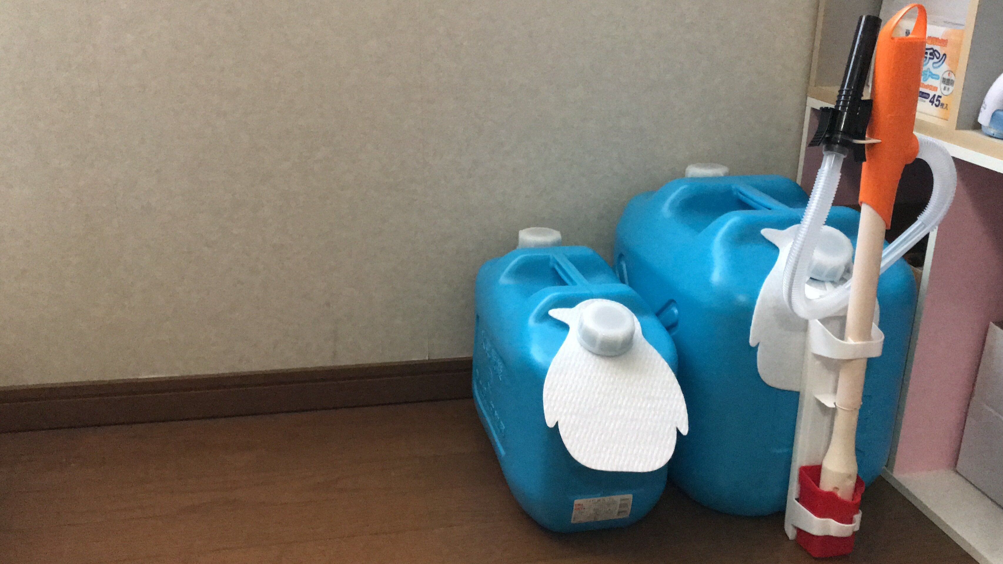 ペンギンデザインの吸収シートは1セットに2枚入っています。厚みがあるシートで、給油ポンプ取り出し時の灯油こぼれをしっかりと吸収してくれます。ありそうでなかった!気が効くなぁと感心したアイテムです。吸収シートをつけておくと、床に灯油がこぼれるのを防いでくれるので掃除がラクです。