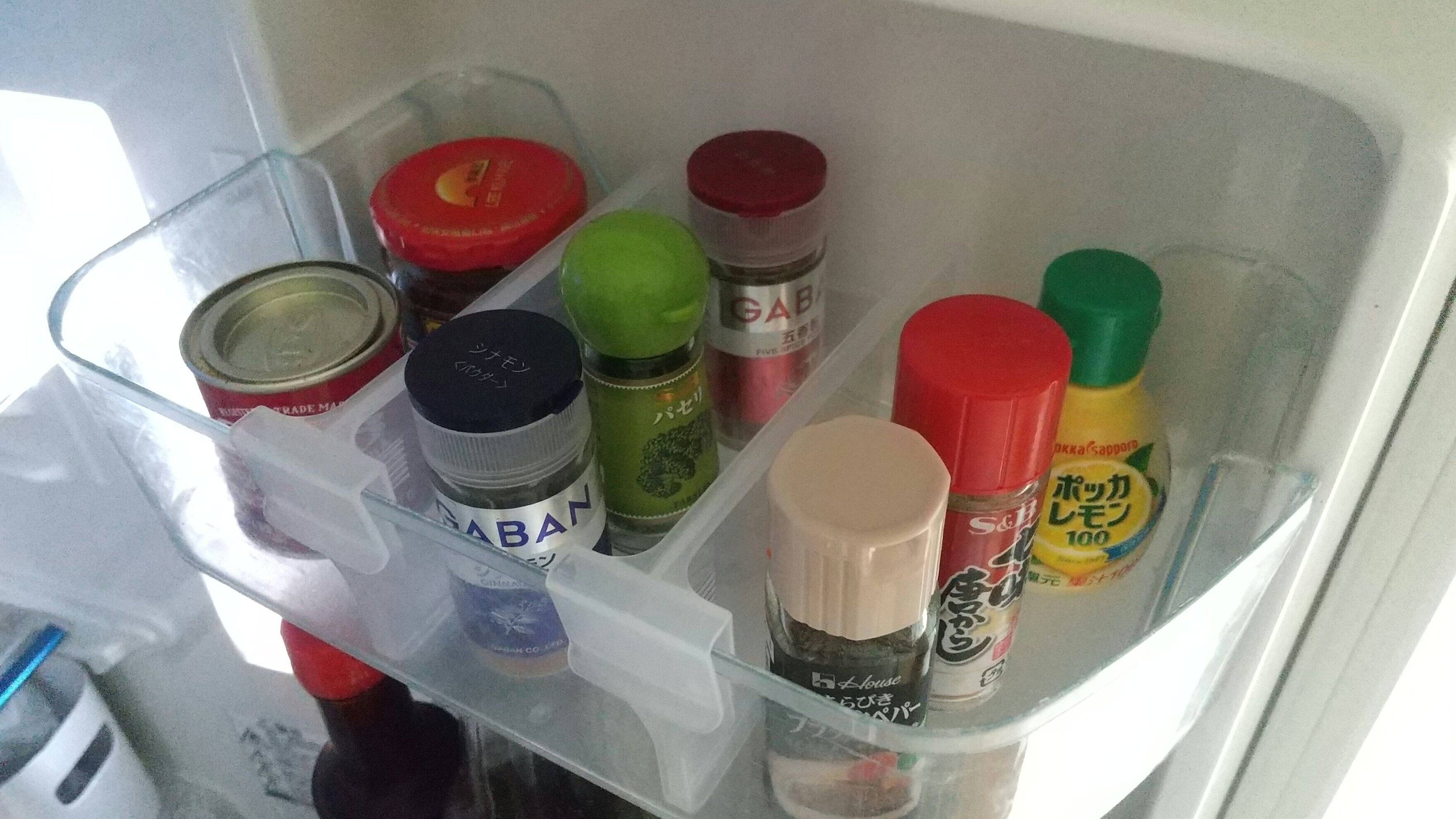 冷蔵庫のドアポケットにも取りつけてみました。
