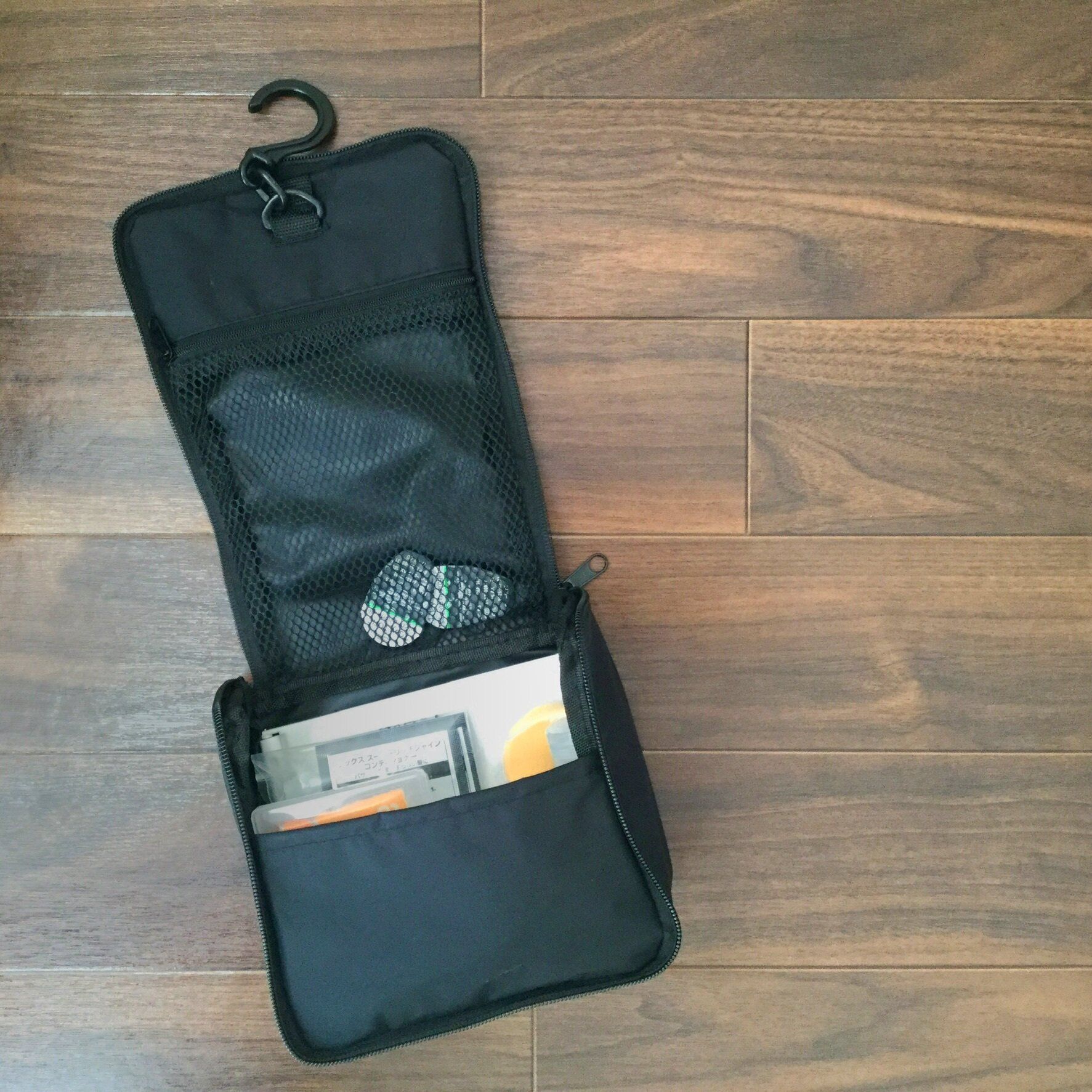 スキンケア用品やバスグッズだけでなくメッシュ部分に充電コードを入れたり、小物をまとめて収納できるので旅行バックの中がスッキリしました。