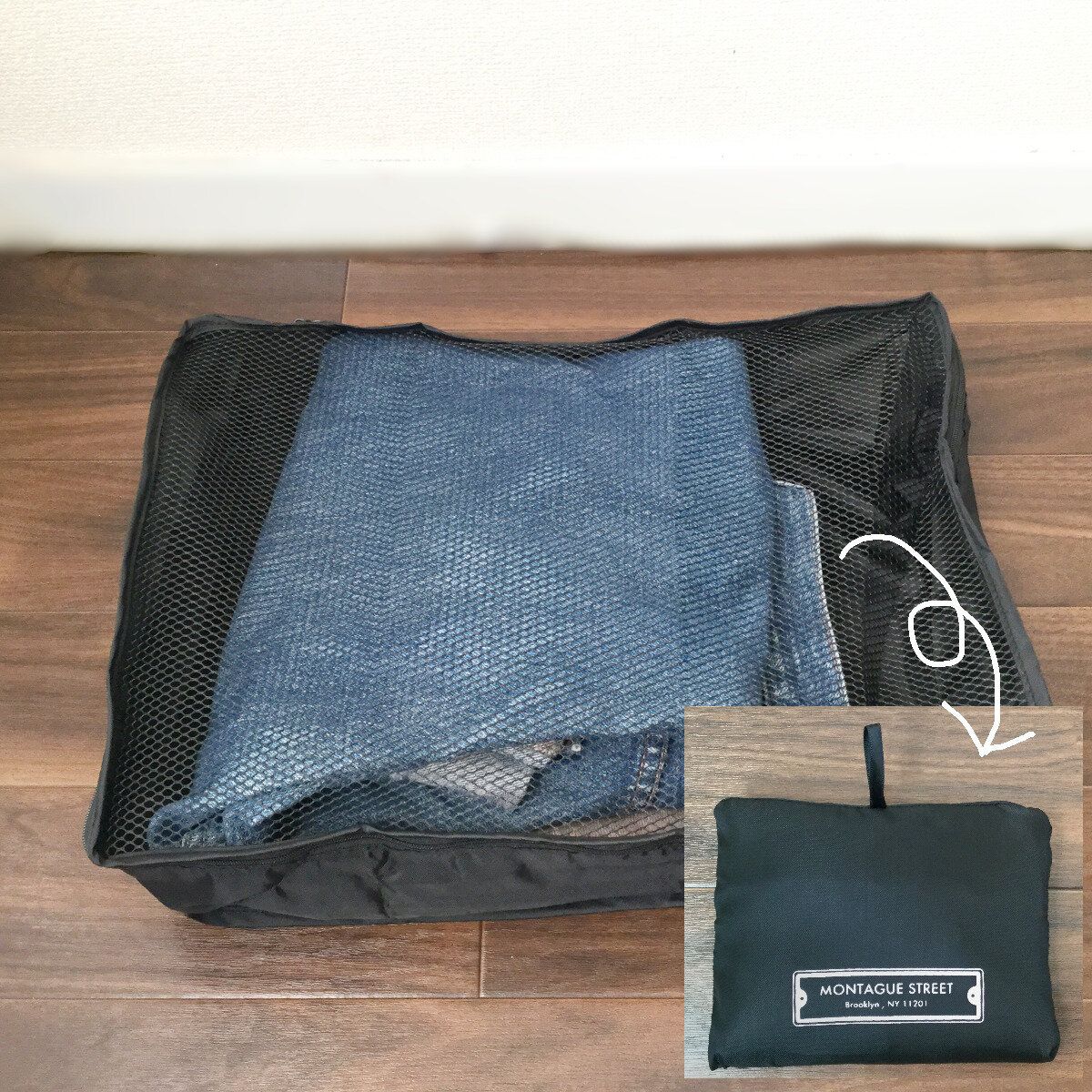 ポケットティッシュ並に小さく折りたためる収納ケース。