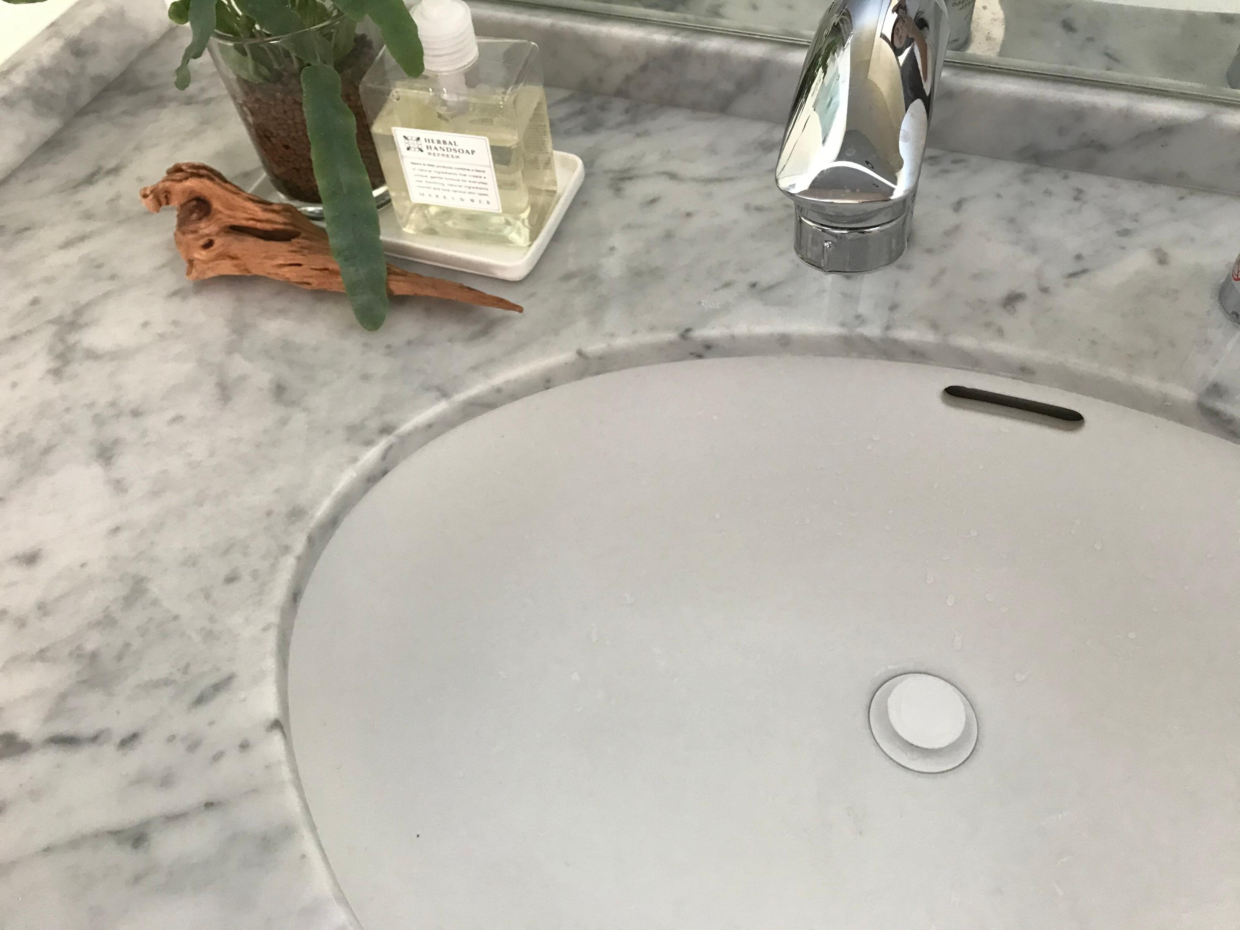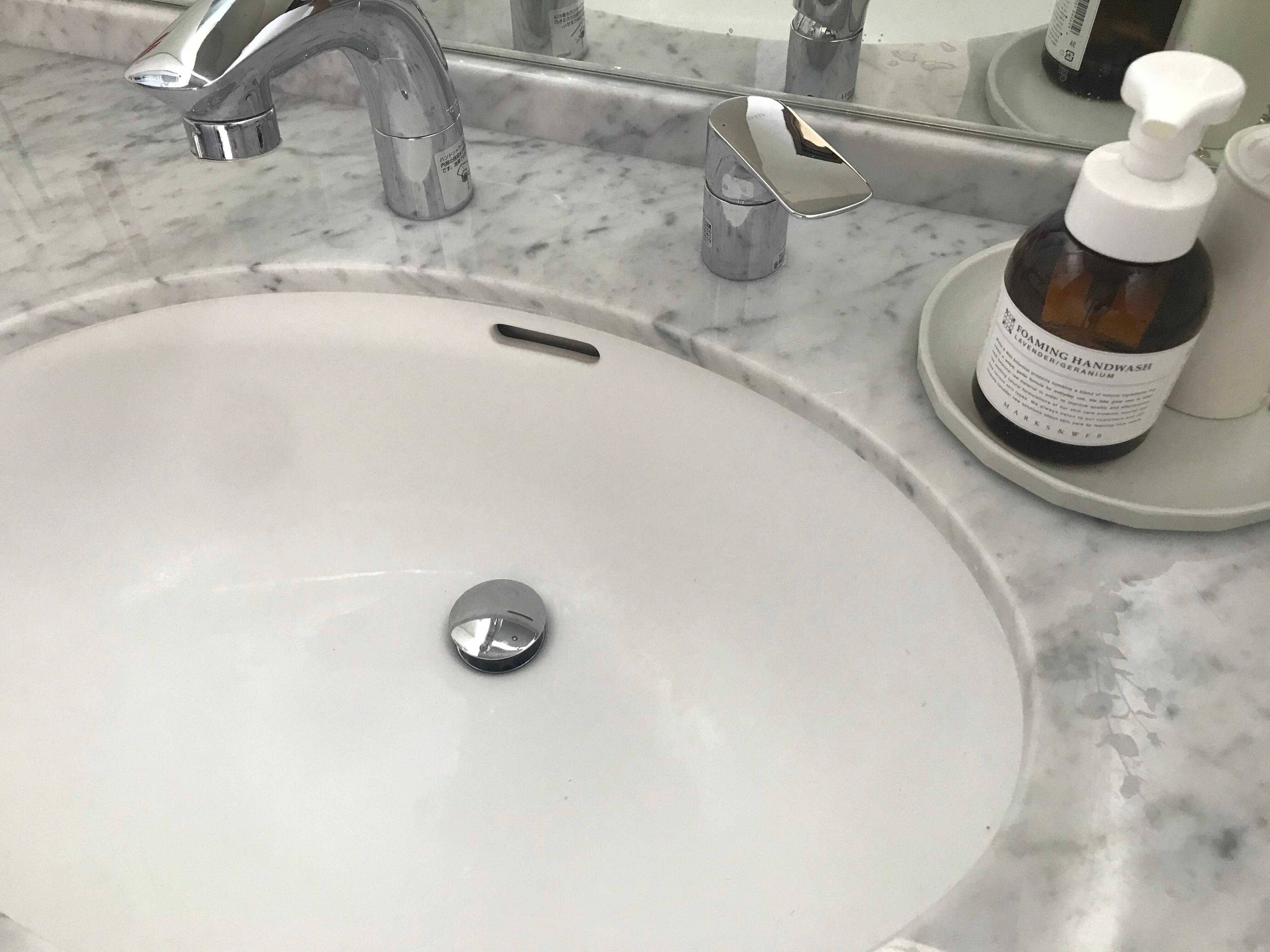 お手入れは、毎日の洗面台掃除のときにゴミを捨てて、洗面ボウルを洗うついでに排水栓もスポンジで簡単に洗っています。排水栓の掃除は1分すらかかりません。笑