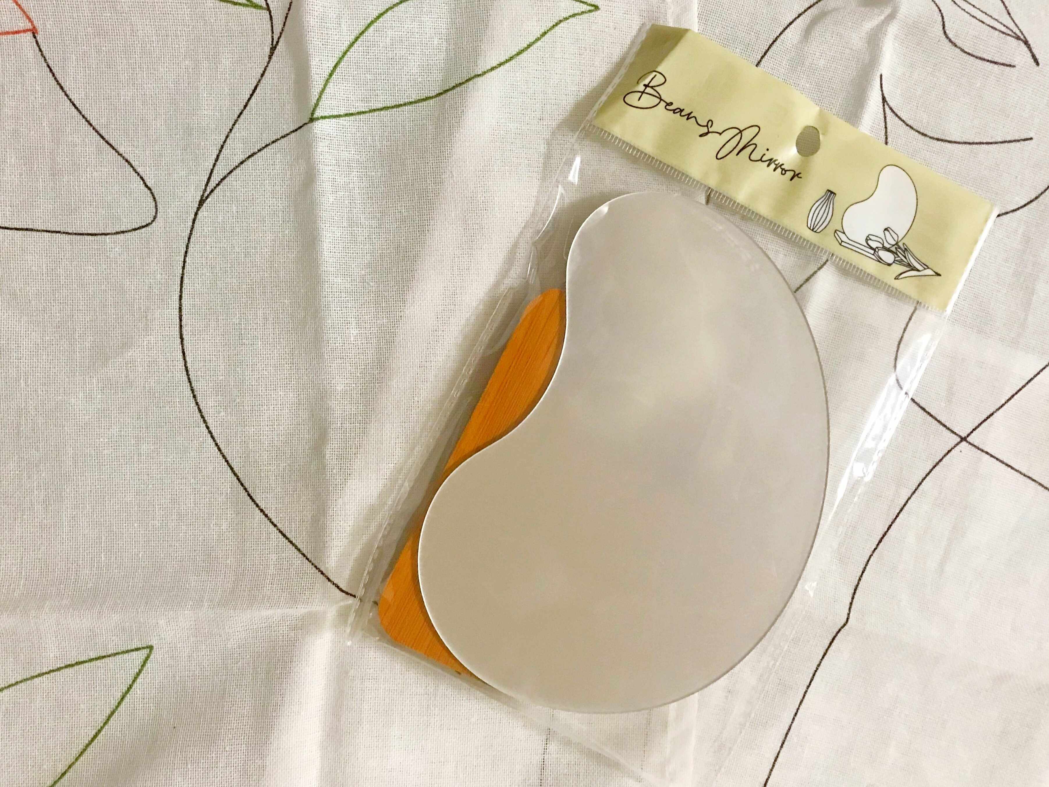 韓国風インテリアに欠かせないアイテムの一つ「ビーンズミラー」(110円)は置くだけで一気に韓国っぽさが演出できるおすすめアイテム。似たようなデザインのアイテムは数多くのショップから発売されていますが、seriaのものは比較的コンパクトなサイズ感なのが特徴的です。