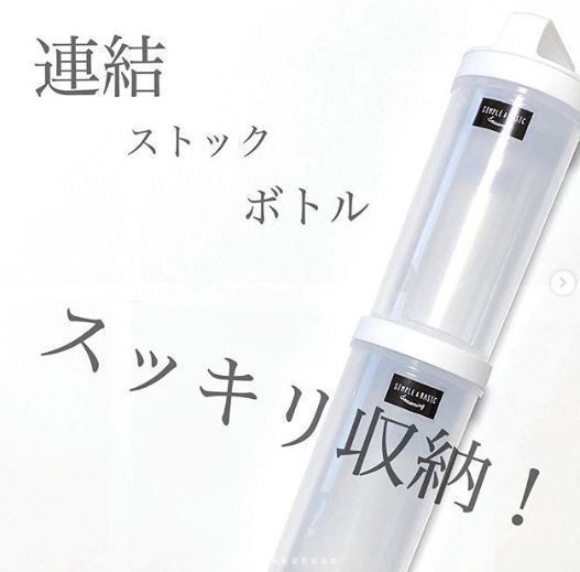 キッチンにあると便利なストックボトル。何本も持っている方が多いのではないでしょうか?使い勝手は良いのですが、重ねて収納できないため、かさばることもありますよね。こちらのストックボトルは連結することができます!くぼみに合わせると、つなげることができるので狭いスペースでも上手に収納可能。
