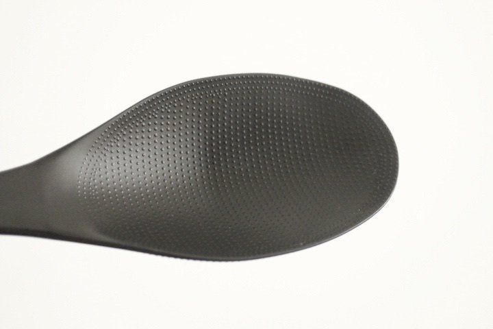 スプーン部分のエンボス加工により、素材がプラスチックでも食材がこびりつきにくいようになっています。洗うときも汚れが落ちやすくてラクラク♪