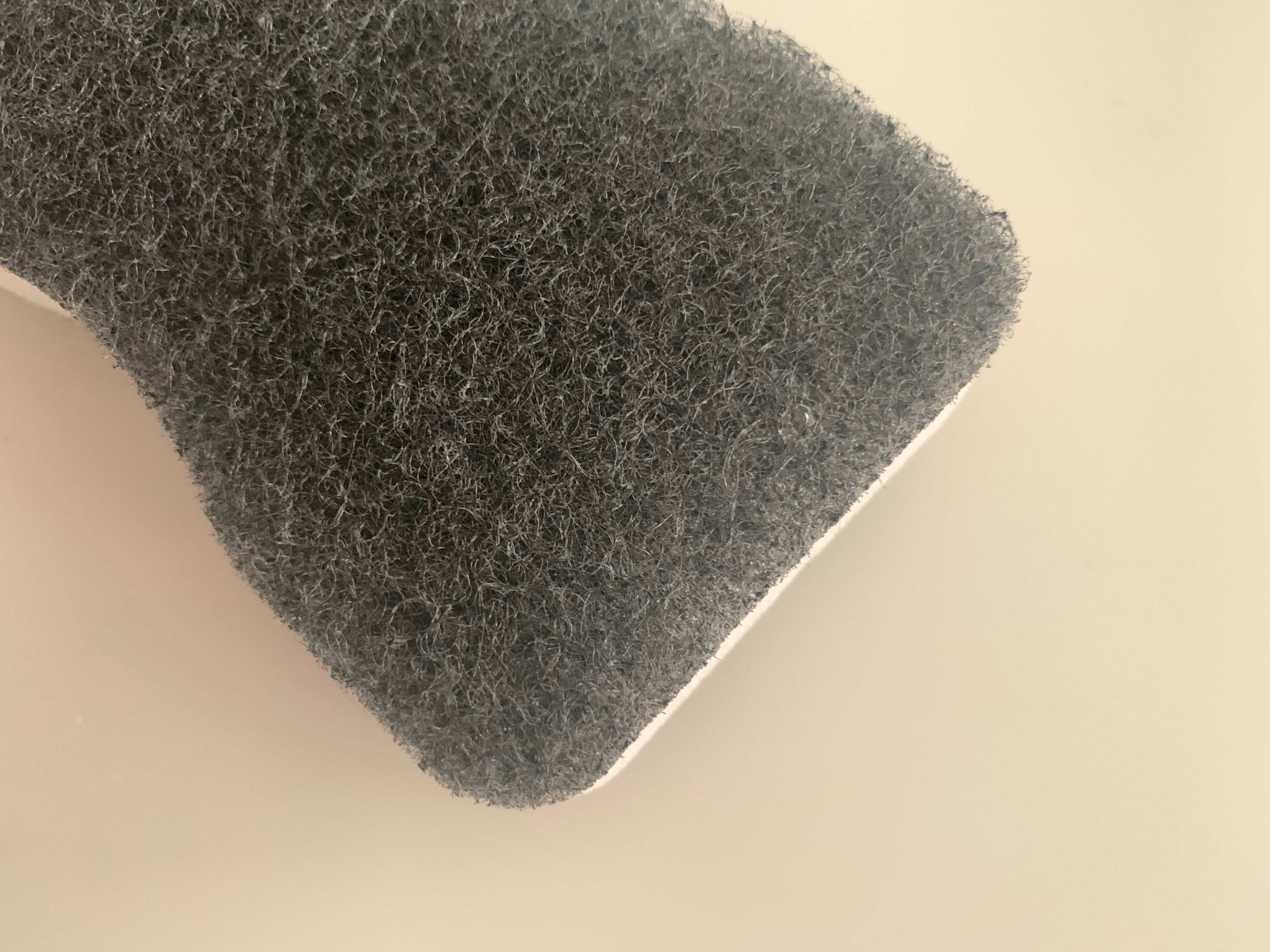 もう片面はポリエステル製。ゴワゴワしていて、汚れをしっかり洗い落とすのに便利です。