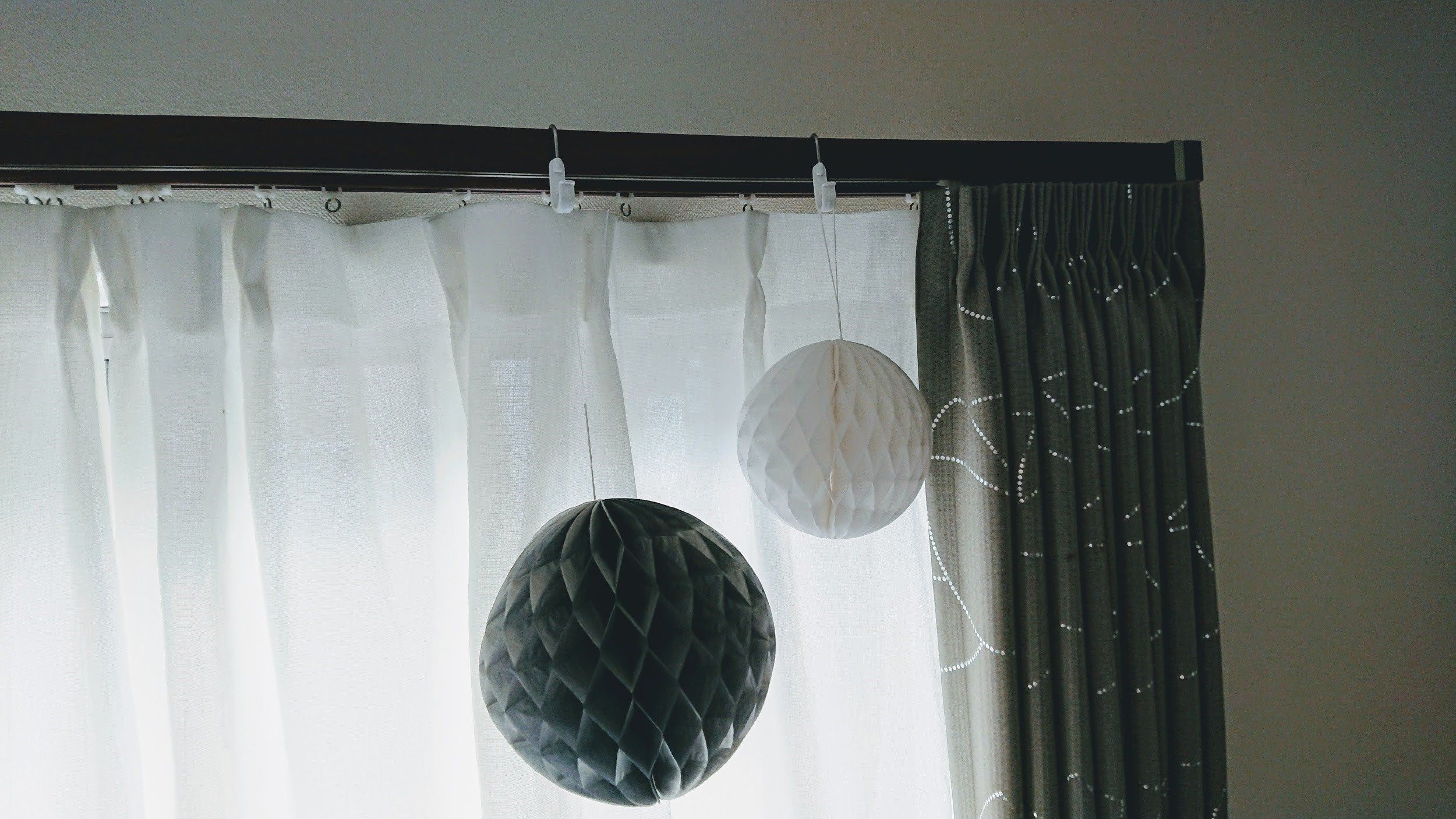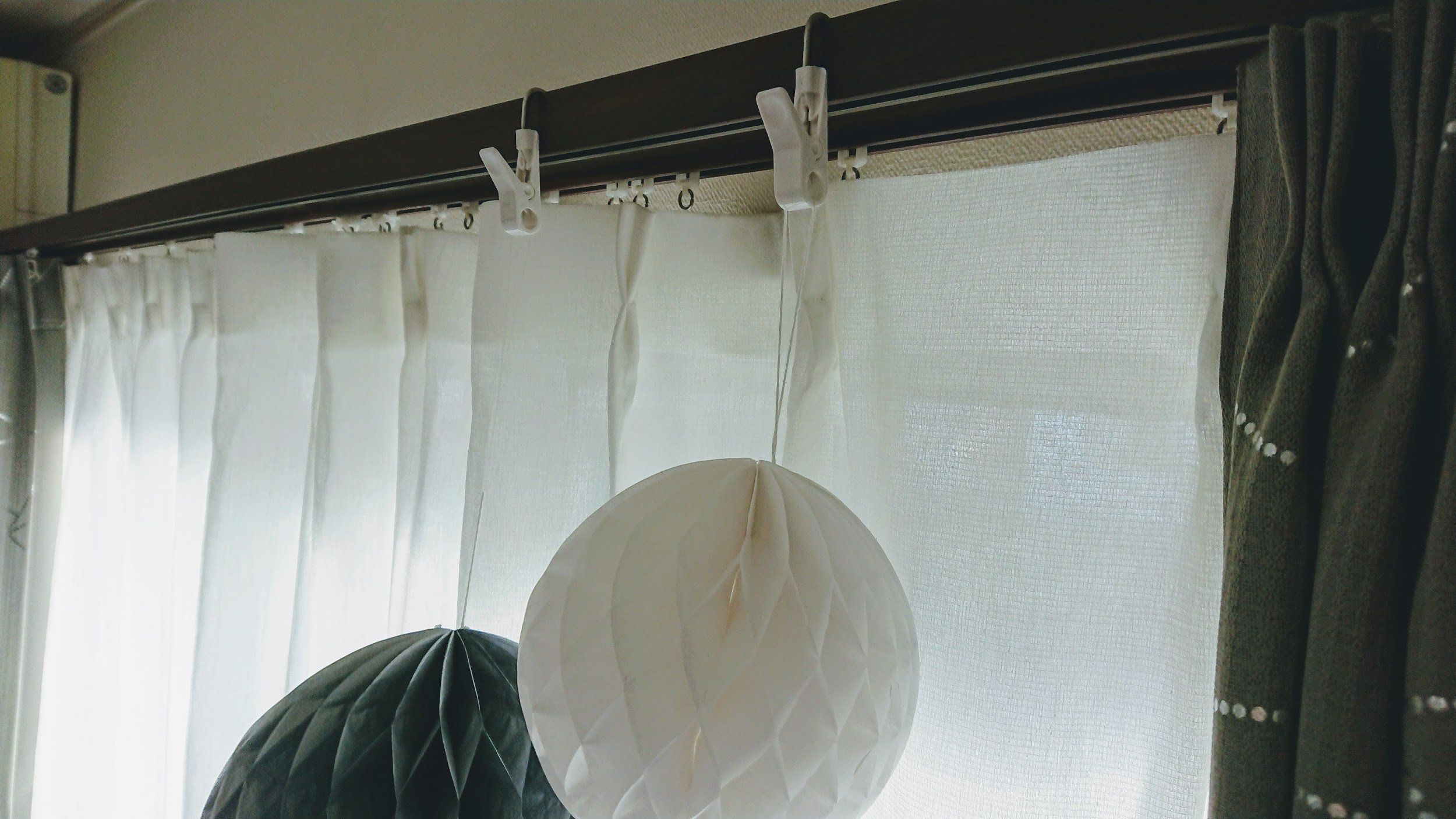 続いてはクリップを「かける」使い方。フックの部分をカーテンレールにかければ、オーナメントを「吊るす」スペースがあっという間にできちゃいます。かけているだけなので、取り付けはもちろん、取り外しも簡単です。
