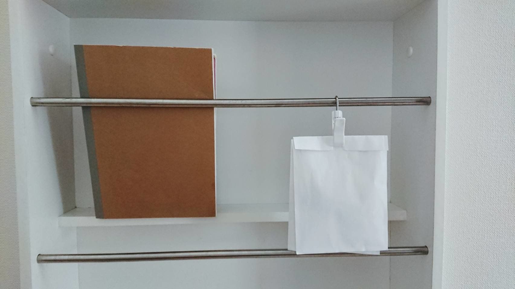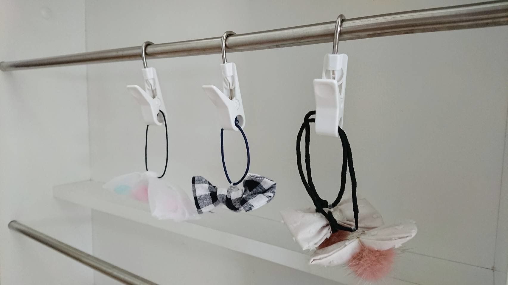 これを使えば、あんなモノやこんなモノを「吊るす」収納ができちゃうんです。商品パッケージには「水切り棚クリップ」と書かれていますが、家中の色んなシーンで活用することが可能です。