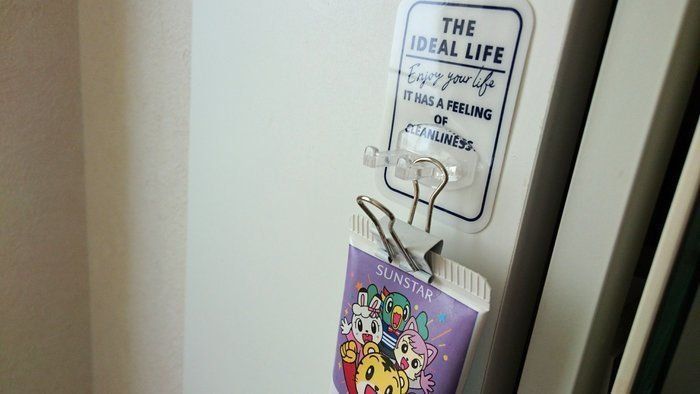 歯ブラシだけではなく、歯みがき粉も歯ブラシホルダーで空中収納が可能に!やり方はとっても簡単で、ダブルクリップで挟んで引っ掛けるだけでOK。