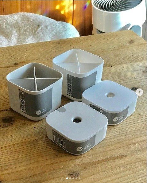 こちらのシンプルデザインの小物入れは、仕切りつきと浅型フタつきがぴったり重なるので、組み合わせて使うとより便利なアイテムに大変身!ごちゃつきがちな小物も、これならきれいに収納できそうです。