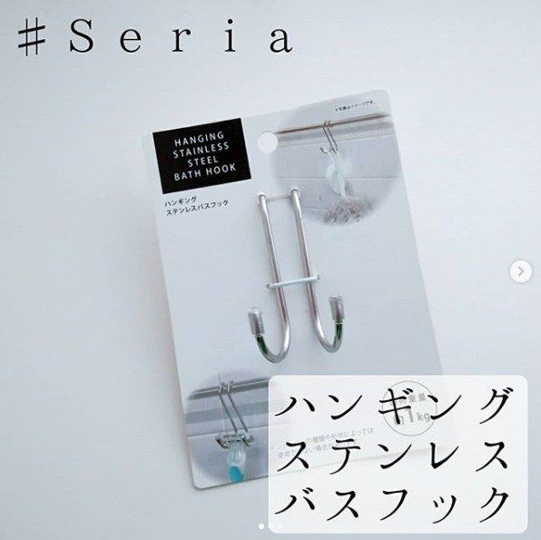 こちらのハンギングステンレスバスフックは、引っかけるフックが2個ついているので使い勝手が抜群によく、使いみちも無限大です。ステンレスタイプなので水気のある場所にも安心して使うことができ、@amkkgramさんはキッチンシンクにかけてスポンジホルダーとして活用しています。