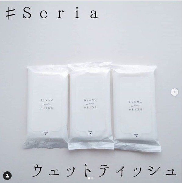 鞄に入れておくと便利なウェットティッシュは、ぜひセリアで買っておきたいところ。セリアのウェットティッシュは、シンプルな飽きのこないデザインなので鞄に入れておいても生活感なく持ち運ぶことが可能です。除菌タイプで100円で3パック入りなのでコスパも抜群です。