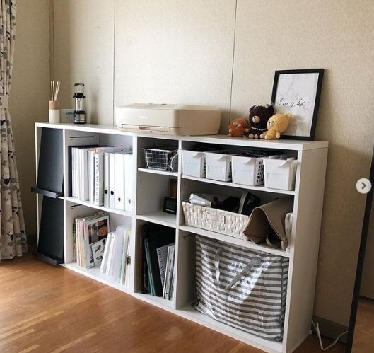 デザインもシンプルでどんなお部屋にも合わせやすいのがうれしいですね。ホワイトのプラスチックのバスケットと一緒に使えばどんなものもすっきりと収納できるはず。