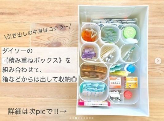 素敵な収納ボックスを選んでも、その中の収納の整理を考えたことはありますか?収納ボックスの中にも、小さなボックスを入れれば細かい薬などもきれいにまとめることができます。