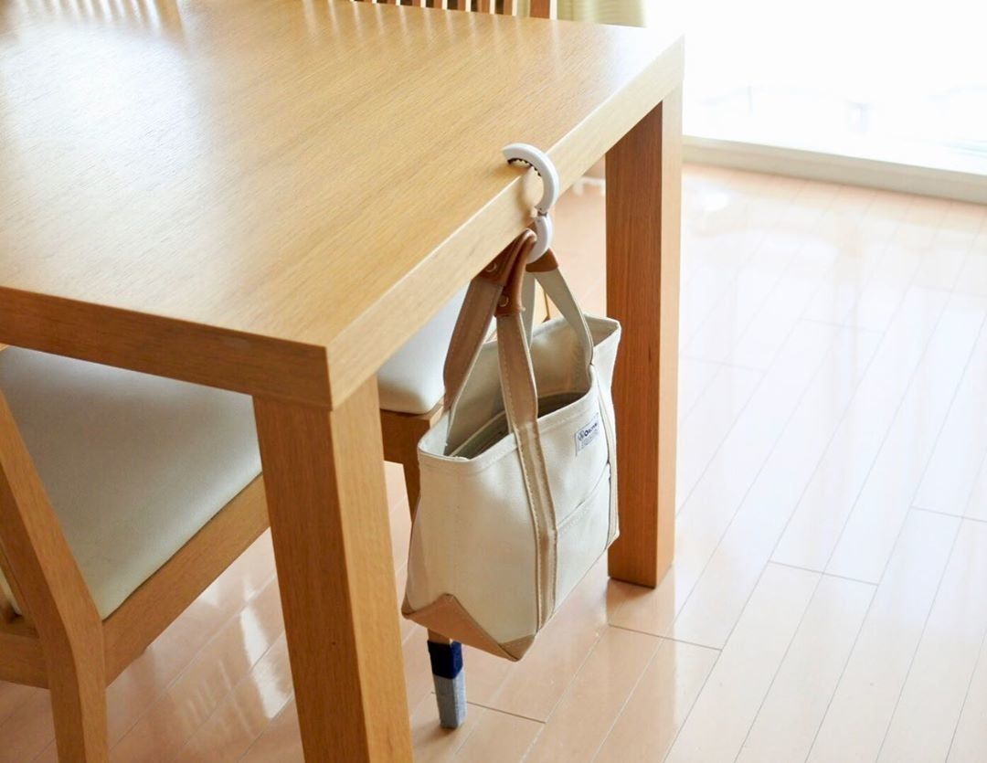 バッグフックは、外出先でも家でもバッグの置き場所を確保できる便利グッズです。引っ掛ける部分はゴムになっているのでズレ落ちたりしません。かさばらずに持ち歩けるのもGOOD!